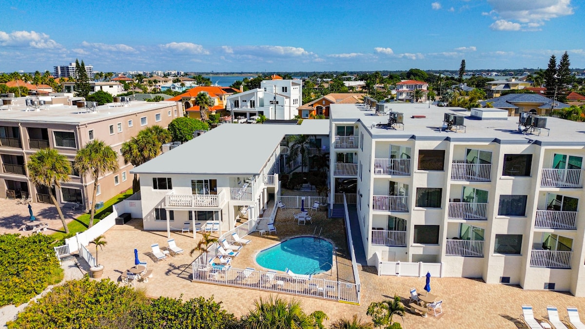 Ми раді повідомити, що наше помешкання відкрите, повністю функціонує та в чудовому стані після нещодавнього урагану. Бронюйте з упевненістю та насолоджуйтеся відпочинком у Флориді! Жодних прихованих зборів або складних інструкцій щодо виїзду. ☞ Помешкання на березі моря з виходом на пляж ☞ Безкоштовна парковка ☞ Басейн із підігрівом ☞ Кондиціонер Самостійне ☞ прибуття На початку вашого перебування надаються предмети першої необхідності (постільна білизна, рушники, туалетне приладдя). Радимо отримувати більше засобів для тривалого перебування. 3200 Gulf Blvd, Belleair Beach