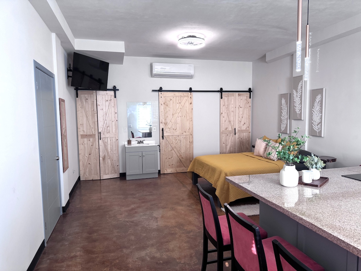 Кроки від дощатого настилу! Ця сучасна квартира з 1 спальнею має кондиціонер, повністю обладнану кухню та місце для 6 осіб. Прогулюйтеся до пляжу, ресторанів, барів і насолоджуйтеся епічним заходом сонця в морі Кортеса. Ідеальне місце для відпочинку та дослідження Пуерто-Пеньяско!