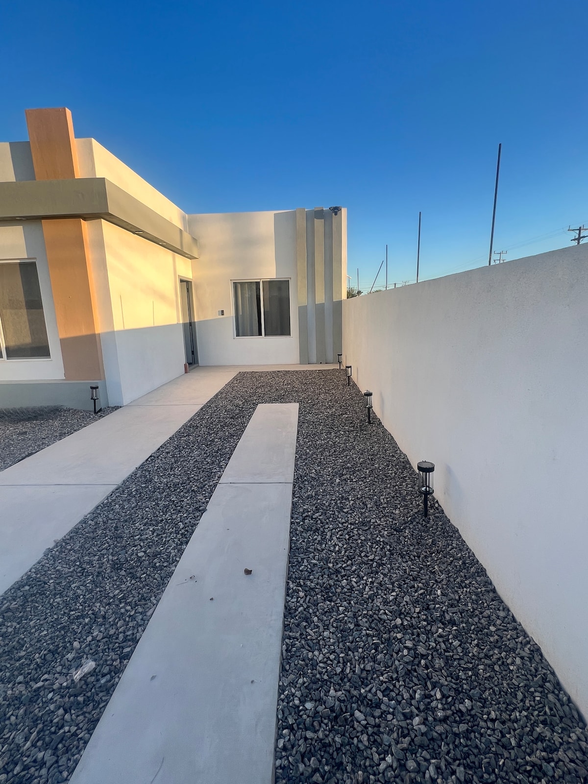 La Casita Brisas, ubicada en una zona segura y tranquila de Puerto Peñasco, ideal para un ambiente familiar, a solo 10 minutos en auto del malecón y de las principales playas y a 5 minutos de las principales cadenas comerciales, como Sams Club, Aurrera, Casa Ley, Autozone, entre otras y a 1 minuto del Hospital General. Smart TV en cada recamara con servicio de cable y Netflix. WiFi, agua caliente, A/C, estacionamiento para 2 autos dentro de la propiedad. Sala, comedor, cocina y 2 recamaras.