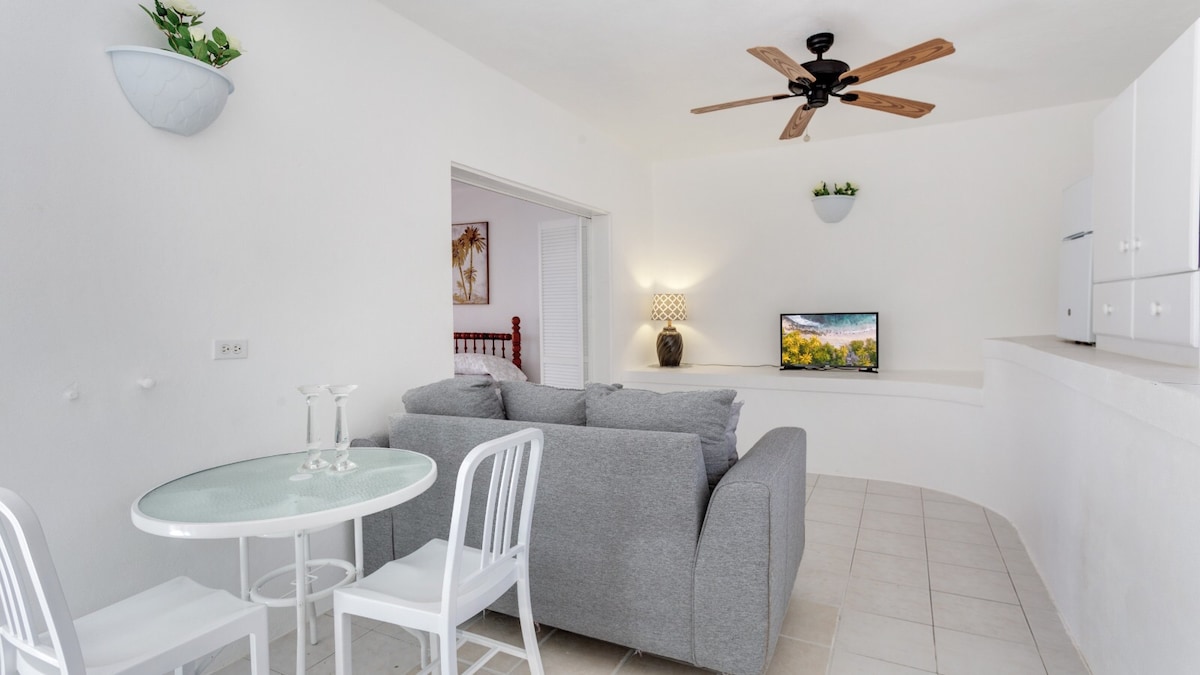 Насолоджуйтеся панорамним видом на Карибське море. Насолоджуйтеся великим зручним ліжком king-size з кухнею, приватною терасою, оптоволоконним Інтернетом, Smart TV, кондиціонером, клубним баром, а також безкоштовними дошками для веслування та байдарками. Сіллі-Кей знаходиться в 5 хвилинах їзди на веслі. Відвідайте пляжні бари та ресторани поблизу, а всесвітньо відомий пляж Шол-Бей знаходиться всього в 10 хвилинах ходьби. За необхідності проводиться ведення домашнього господарства на вимогу. Ми знаємо, що вам сподобається ваше перебування.