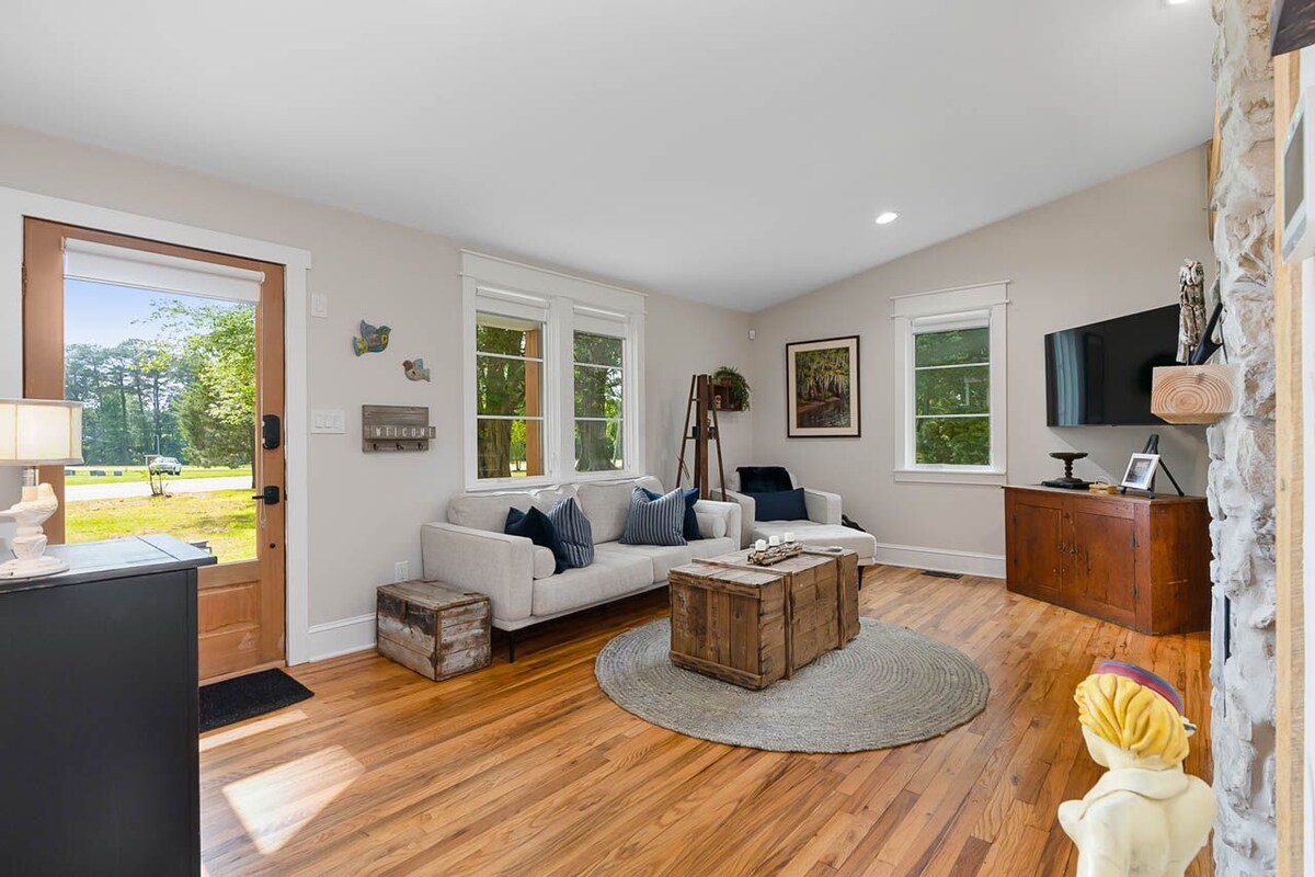 Ласкаво просимо до серця Апекс, Північна Кароліна! Наш повністю відремонтований будинок з 3 спальнями розташований на тихому тупику, всього в декількох хвилинах ходьби від історичного центру міста Апекс! Ми знаходимося в 5 хвилинах їзди від 540, US 1 і Hwy 64, з 20 хвилинами до RDU. Ми з радістю вітаємо всіх гостей будь-якого походження, включаючи групи сімей, друзів або бізнес-мандрівників. Дізнайтеся, чому Апекс, Північна Кароліна, неодноразово називають найкращим містом, щоб жити в Америці!