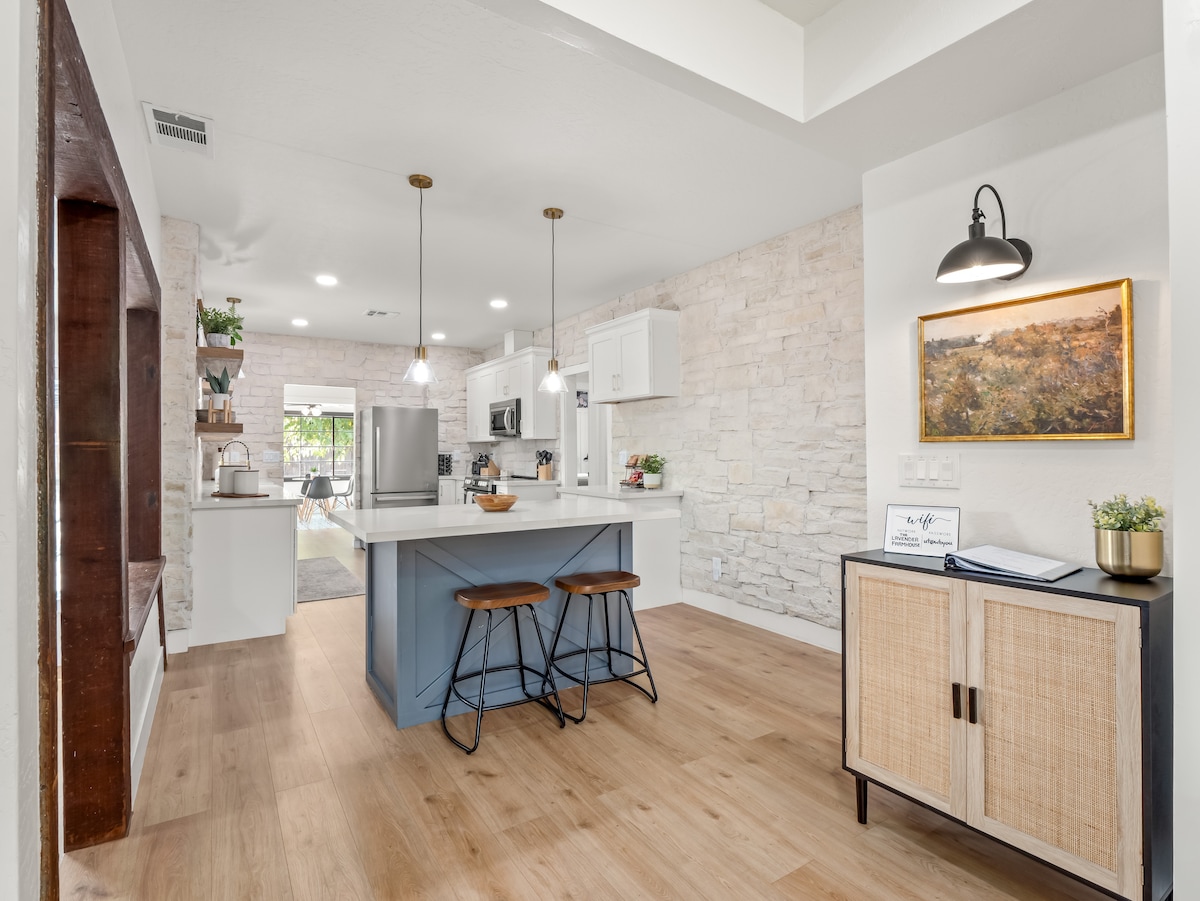 Не дивіться далі! Нещодавно відремонтований будинок для відпочинку з 4 ліжками та 2 ванними кімнатами, ідеально підходить для груп і сімей (11 спальних місць). Стильний бохо-гламний декор, повністю обладнана кухня, огороджений двір з патіо, гаражний паркінг та спеціальне робоче місце. Ваш ідеальний відпочинок! ✔ 4 спальні та 2 ванні кімнати (11 спальних місць) ✔ Повністю обладнана кухня ✔ Стильний прикрас ✔ Огороджений двір із набором патіо ✔ Гаражний паркінг ✔ Виділене робоче місце