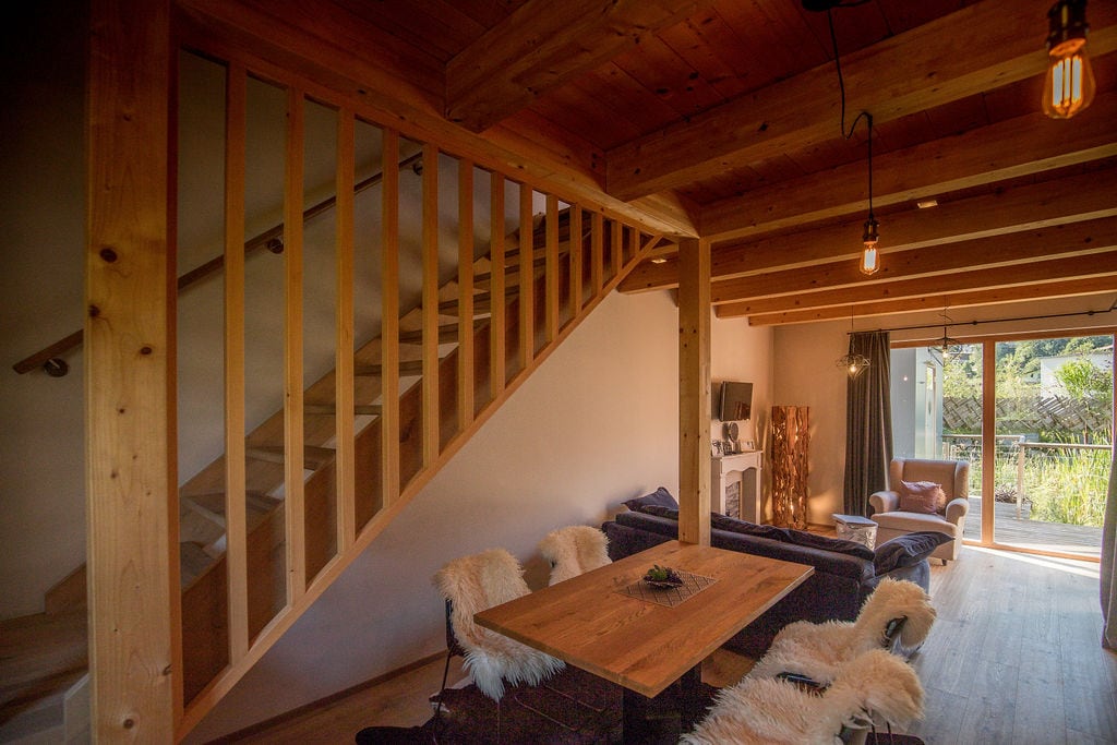 Сучасний і з любов 'ю мебльований садовий будинок із двома терасами та цегляним барбекю, який можна використовувати для барбекю або як камін. У гостьовому будинку є 55-дюймовий телевізор із доступом до Інтернету та безкоштовним акаунтом Netflix. Ставок для плавання доступний як для вас, так і для мешканців сусіднього сільськогосподарського маєтку. Бажаєте завершити своє перебування приватною сауною ввечері? Забронюйте нашу сауну з масиву дерева виключно за 35 євро.