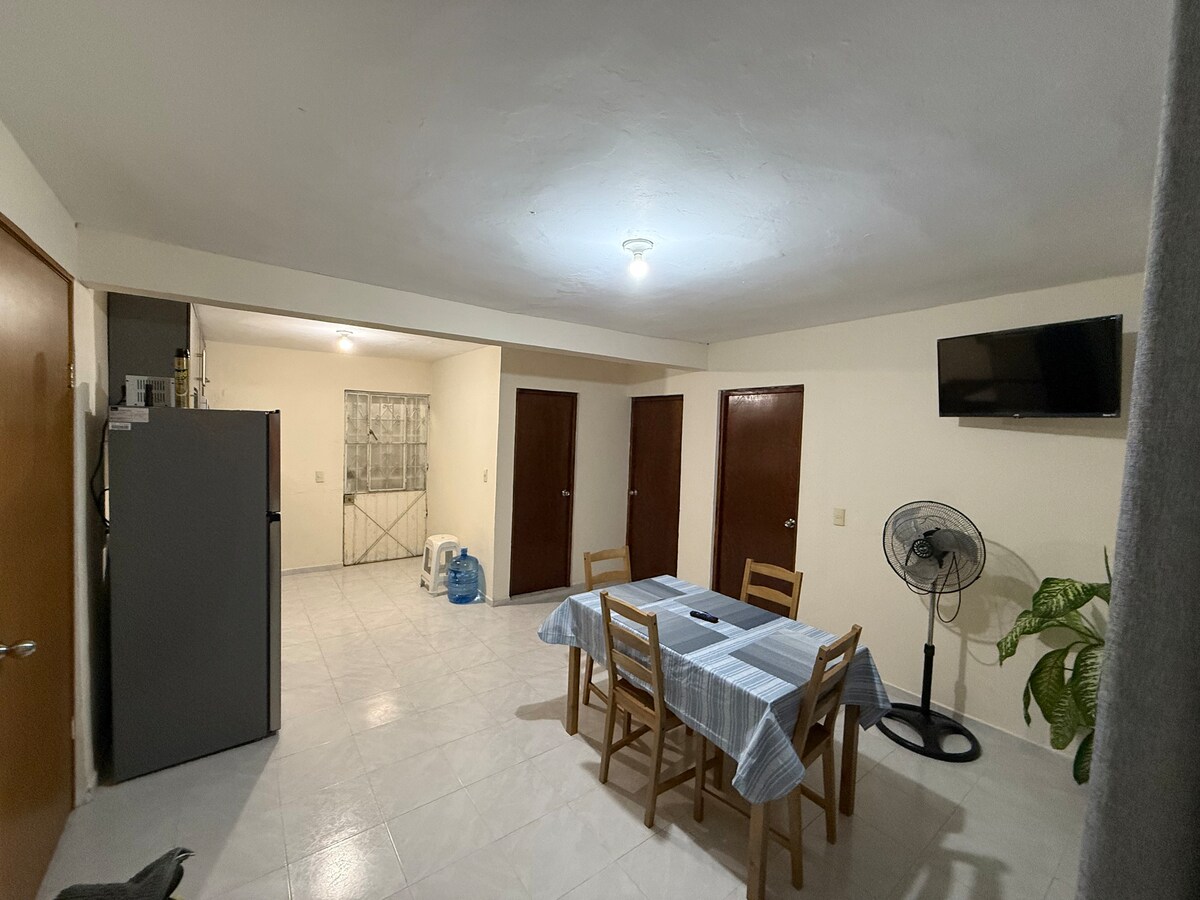 Комфортна квартира, відкритий простір з усім необхідним для приємного перебування. Вона складається з невеликої, але функціональної кухні, їдальні, двоспального ліжка, дивана-ліжка, 1 повної ванни, праски, плити, холодильника, комори, мікрохвильової печі, блендера, кавоварки, посуду, бойлера, міні-роздільник, Smart TV, Wi-Fi, вентилятор для п 'єдесталу та Незалежний вхід Два з половиною квартали від дороги Тампіко-Манте, гарне розташування, 6-8 хвилин від аеропорту Тампіко.