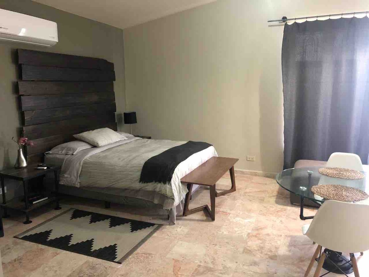 Просторий, сучасний і обладнаний лофт розташований у центрі міста Монтеррей. 🍽️ ☕️ – Кухня обладнана сковородами, каструлями, аерофритюрницею, кавоваркою (американська кава, без кофеїну та чай), кухонним приладдям тощо. 🛏️ – ліжко розміру «queen size», чисті простирадла та постіль 🛋️ – Зручний диван-ліжко ❄️ Міні-спліт з кондиціонером і обігрівом 📺 – 50-дюймовий телевізор, Netflix, Prime, HBO Max 🛁 – повноцінна ванна кімната, чисті рушники, сушарка та туалетні приналежності; 👨💻 – Робочий стіл + Alexa 🏪 - OXXO 🏋️♂️ Багато зручностей