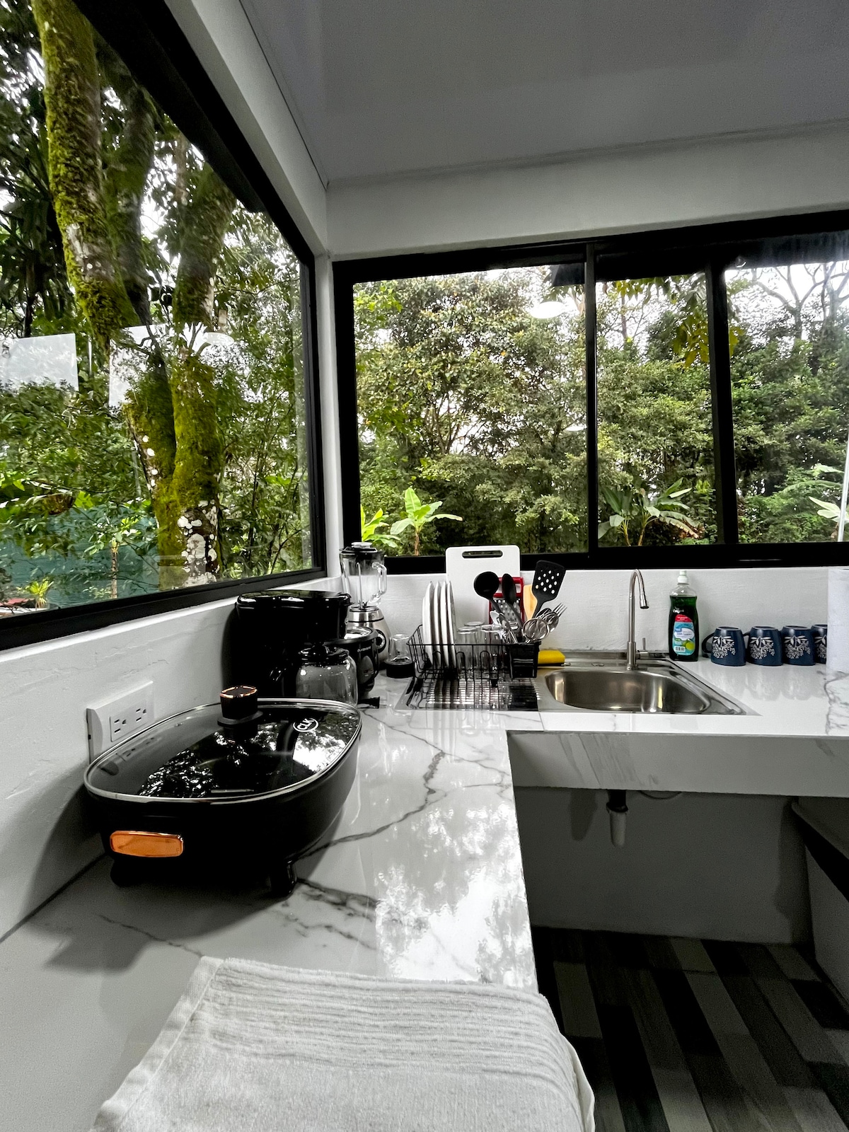 Ласкаво просимо на віллу Pure Oxygen Rainforest Villa - спокійний відпочинок за 7 миль від Ла-Фортуни. Ця вілла ідеально підходить для романтики або відпочинку, поєднує розкіш з природою. Насолоджуйтеся ліжком king-size, смарт-телевізором і високошвидкісним Wi-Fi. На віллі є сучасна ванна кімната, душ на відкритому повітрі, повністю обладнана кухня та пральня. Відпочиньте на терасі з видом на тропічний ліс або відвідайте пишний сад. Приватна стоянка забезпечує зручність. Відпочиньте від спокою та зануртеся в яскравий тропічний ліс Коста-Рики.