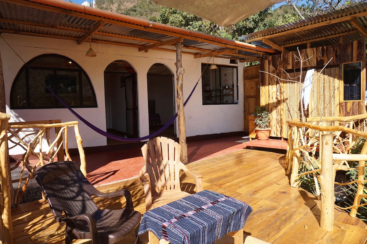 Розташована в центрі культури майя й оточена захоплюючими вулканами, Casa Sirena поєднує історію та природу з сучасним комфортом. Ця стильна квартира пропонує всі необхідні зручності для відпочинку, а також високошвидкісний Інтернет Starlink, що ідеально підходить для віддаленої роботи або потокової передачі даних. Великі двері відкриваються на просторий внутрішній дворик, створюючи враження відкритого простору з приголомшливим видом на озеро. Легко дістатися на водному таксі або тук-туку прямо до ваших дверей. Вам не захочеться виїжджати!