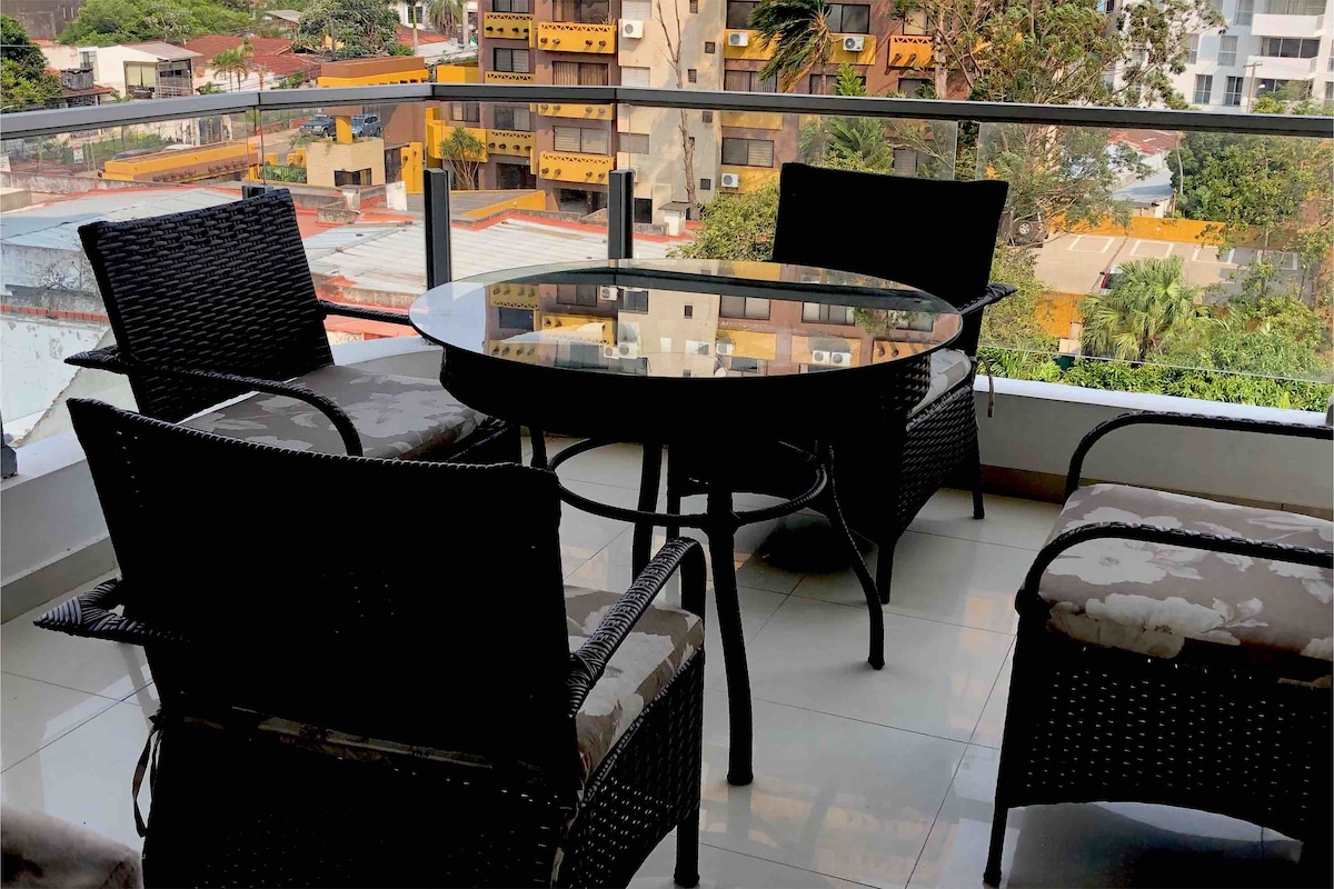 Насолоджуйтеся та відпочивайте в цьому помешканні для двох людей, нових, тихих і елегантних. Розташоване в Equipetrol, найкращому районі Санта-Круса, неподалік від ресторанів і торгових центрів. Він пропонує комфорт, комфорт і безпеку. Ви знайдете: Wi-Fi, 55-дюймовий смарт-телевізор, кабельне телебачення, кондиціонер, пральна машина + сушарка. ✔ Великий басейн і сауна ✔ Тренажерний зал ✔ Кімната для переговорів ✔ Цілодобова стійка реєстрації Повністю обладнана рушниками, шампунем, кондиціонером, милом, туалетним папером, чаєм, кавою, цукром, сіллю та олією.