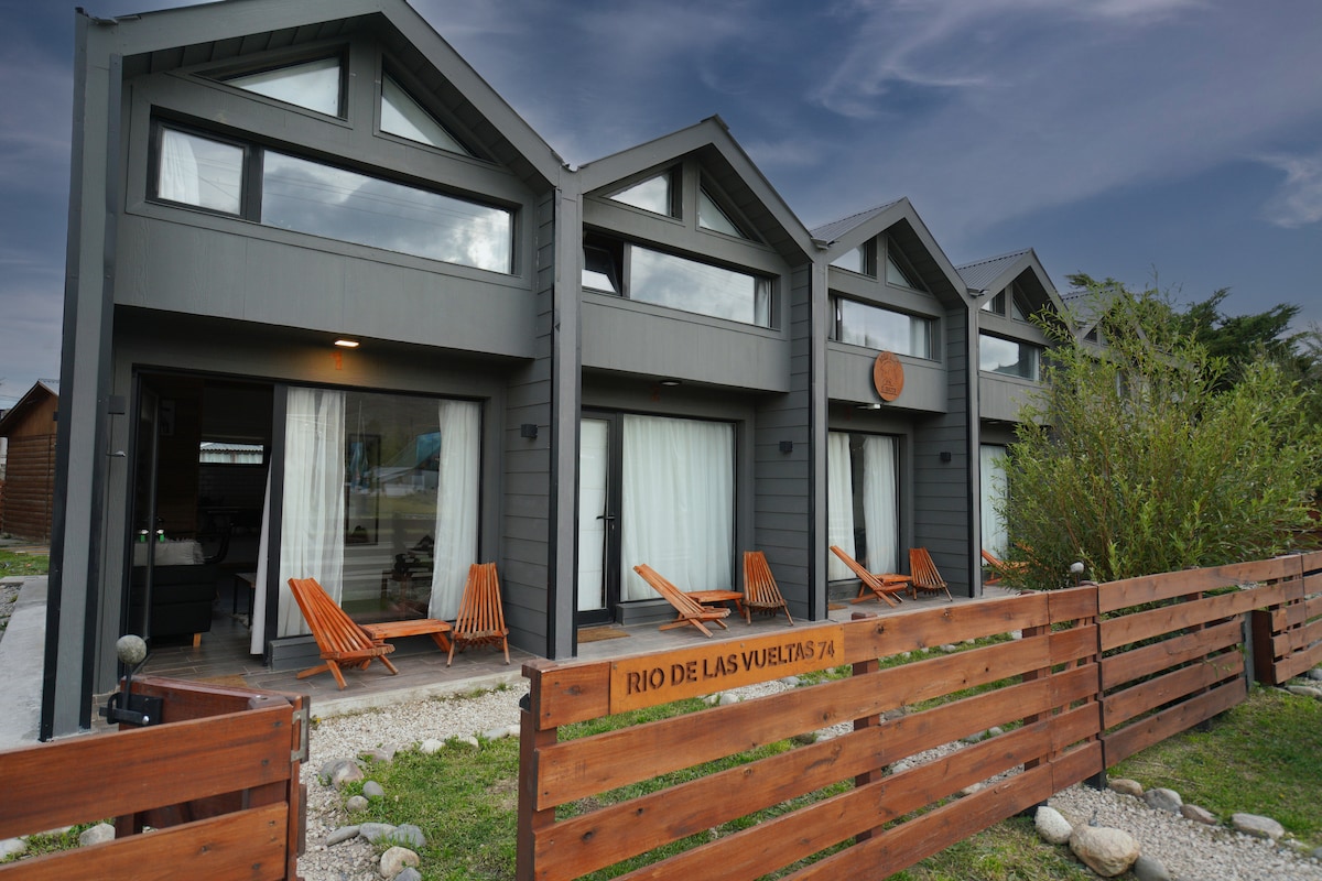 Унікальний дуплекс у Ель-Калафате. Дизайн, якість і комфорт. Тут є все необхідне, щоб зробити ваше перебування найкращим, повністю обладнана кухня та ванна кімната, підлога з підігрівом, телевізор, Wi-Fi, пральня. На верхньому поверсі є дві спальні, з першим якісним пружинним (двома або килимками), балконом з прекрасним видом на аргентинське озеро та гірський хребет, обидві кімнати з табличкою, додатковими ковдрами та подушками. Доступно для 4 гостей, зверніться до додаткових послуг.