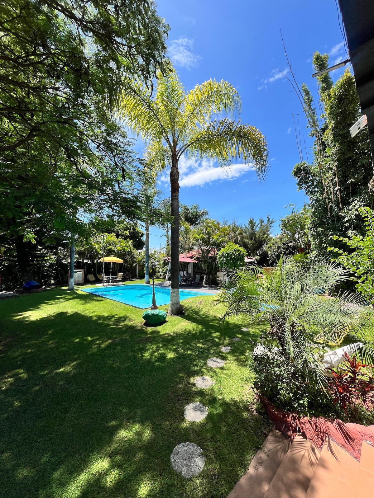 alojamiento único, tiene mucho espacio para que disfrutes con los tuyos en el mejor clima de Atlixco, a 30 min de la CD. de Puebla , casa con espacios completamente nuevos y espaciosos, la alberca es climatizada con paneles solares , palapa equipada con cocineta básica y baño, 4 cómodas habitaciónes con baño completo, áreas verdes, con camastros y hamacas, haz tu fogata a la luz de la luna en un clima cálido con ambiente familiar y estacionamiento para 4 autos dentro de las instalaciones.