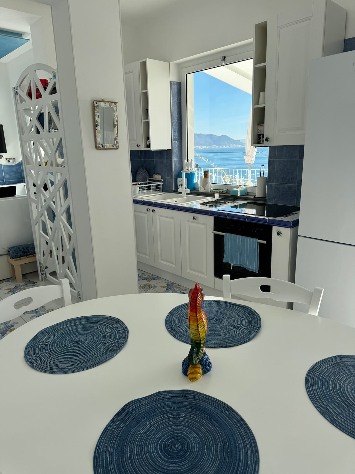 1 км від центру Санта-Марія-кон-Пунта-Лікоза, легкий доступ, паркування на неохоронюваній парковці, квартира на першому поверсі вілли (без ліфта), вишукано відремонтована, оточена середземноморською рослинністю. До пляжу можна дістатися спуском на 350 метрів. У квартирі є фен, пральна машина, Wi-Fi, повна кухня, гарячий/холодний кондиціонер, надзвичайно великий душ і дивовижна постільна білизна Vista, доступ до солярію.