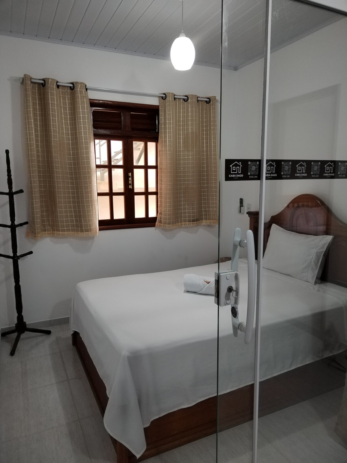 Chalé усамітнено всередині сімейного будинку. Люкс, спальня з двоспальним ліжком та спальня з двоярусною кроватью. Повна кухня, їдальня, вітальня з каміном та ванна кімната. Ми надаємо постільну та банну білизну. Зовнішня зона з приватним заднім двором. Право користуватися душем із природною водою та басейном із природною водою на ранчо. Ми пропонуємо екскурсійні та туристичні пакети в регіоні: піші прогулянки, біг, катання на гірських велосипедах, верхова їзда та поїздки на джипах. А також функціональні тренувальні заняття з персональним тренером.