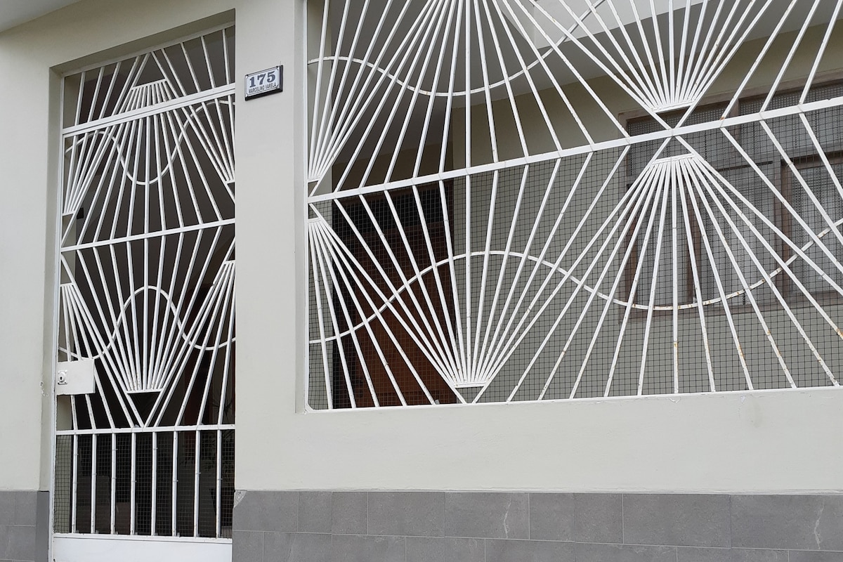 Квартира розташована всього в 8 хвилинах ходьби від історичного центру Трухільйо. У вас є сусідні автобуси, які прямують куди завгодно. У помешканні є терма з гарячою водою (24 години), кухонне приладдя: кухня, рисоварка, кухня, блендер тощо. Тут також є 1 їдальня на 4 осіб, 1 зручний диван-ліжко для невеликих перерв і зона для прання (доступна на 5-му поверсі). Квартира розташована в безпечній зоні, на 3-му поверсі, без ліфта.