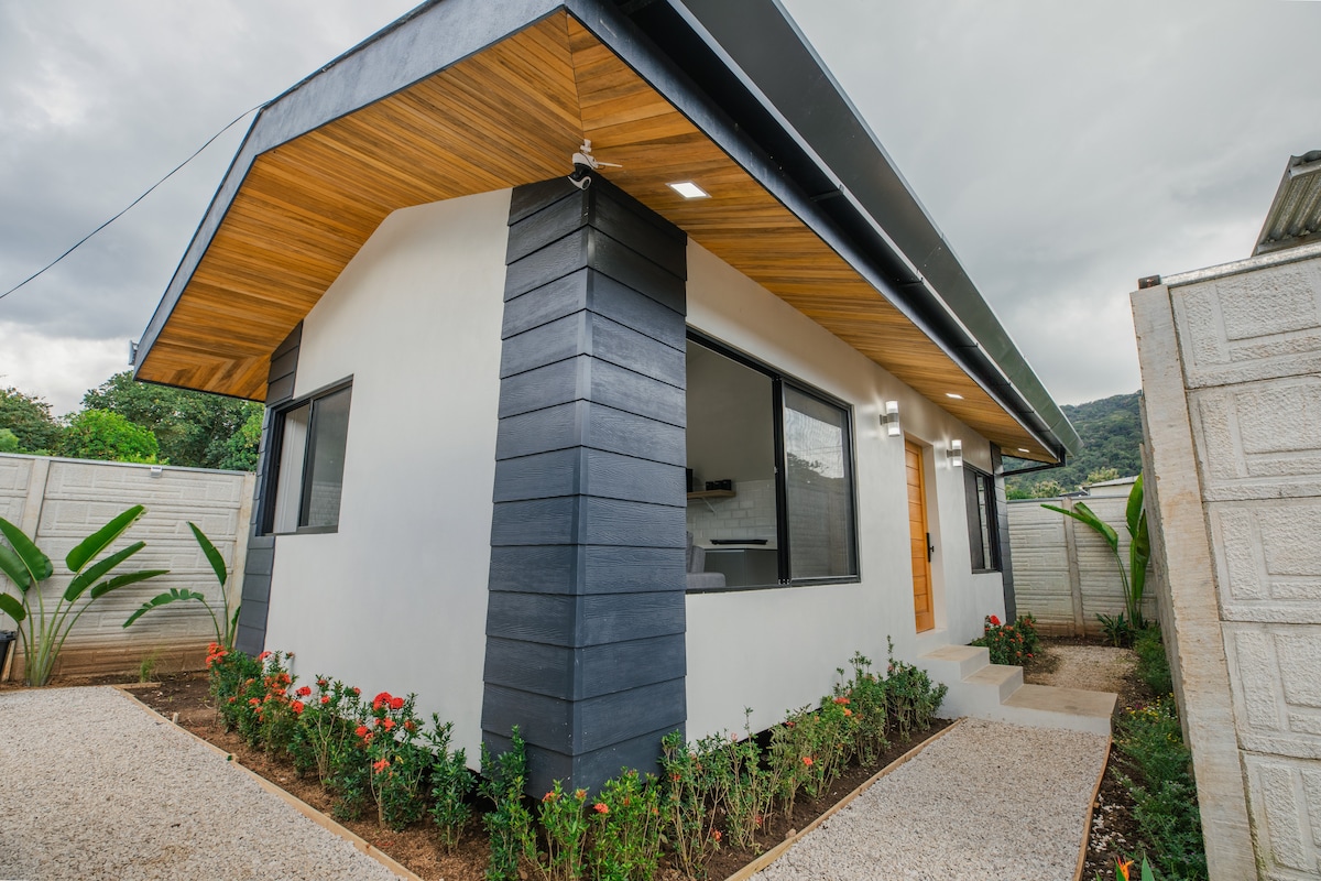 Thoughtfully designed, this elevated and high ceiling house offer all the comfort and convenience needed for both short and extended stays. - Loft bedroom with queen-size bed - Living room, sofa bed (medium) - Spacious and sunlit - Desk - Bathroom w/ rain shower - AC, ceiling fans - 100mb Wi-Fi - Safe box - Fully equipped kitchen (stove, fridge, microwave, coffee maker, more. - Covered terrace - Large sliding glass doors (w/ screens) - Laundry - Pool - Outdoor shower - Private & secure parking