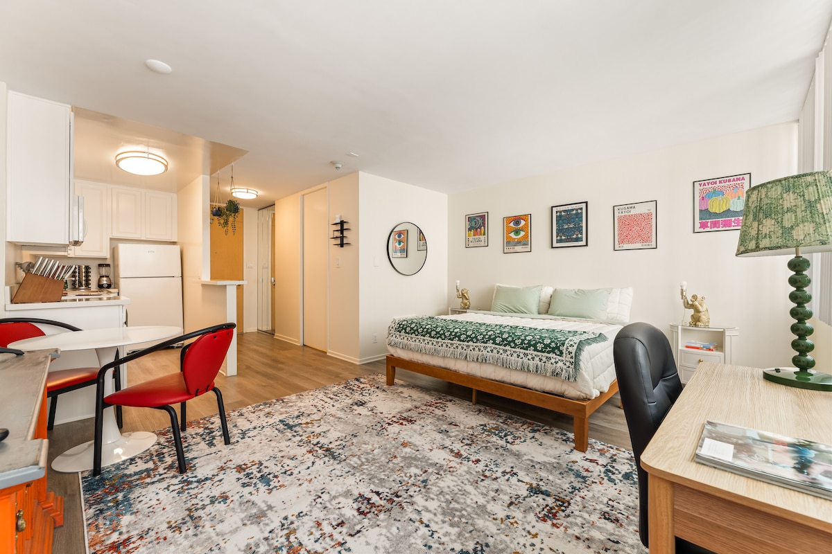 На вас чекає чарівний затишний відпочинок у центрі Санта-Моніки! 15–20 хвилин ходьби до пляжу та пірсу Санта-Моніки зі знаменитою набережною Третьої вулиці прямо на вашому задньому дворі. Відпочивайте на пляжі або прогулюйтеся до найкращих ресторанів і магазинів Санта-Моніки! Коли ви не гуляєте, зробіть класичні записи або відпочиньте на балконі, насолоджуючись вітерцем Санта-Моніки! Створіть спогади, які триватимуть вічно, тут, у самому центрі!