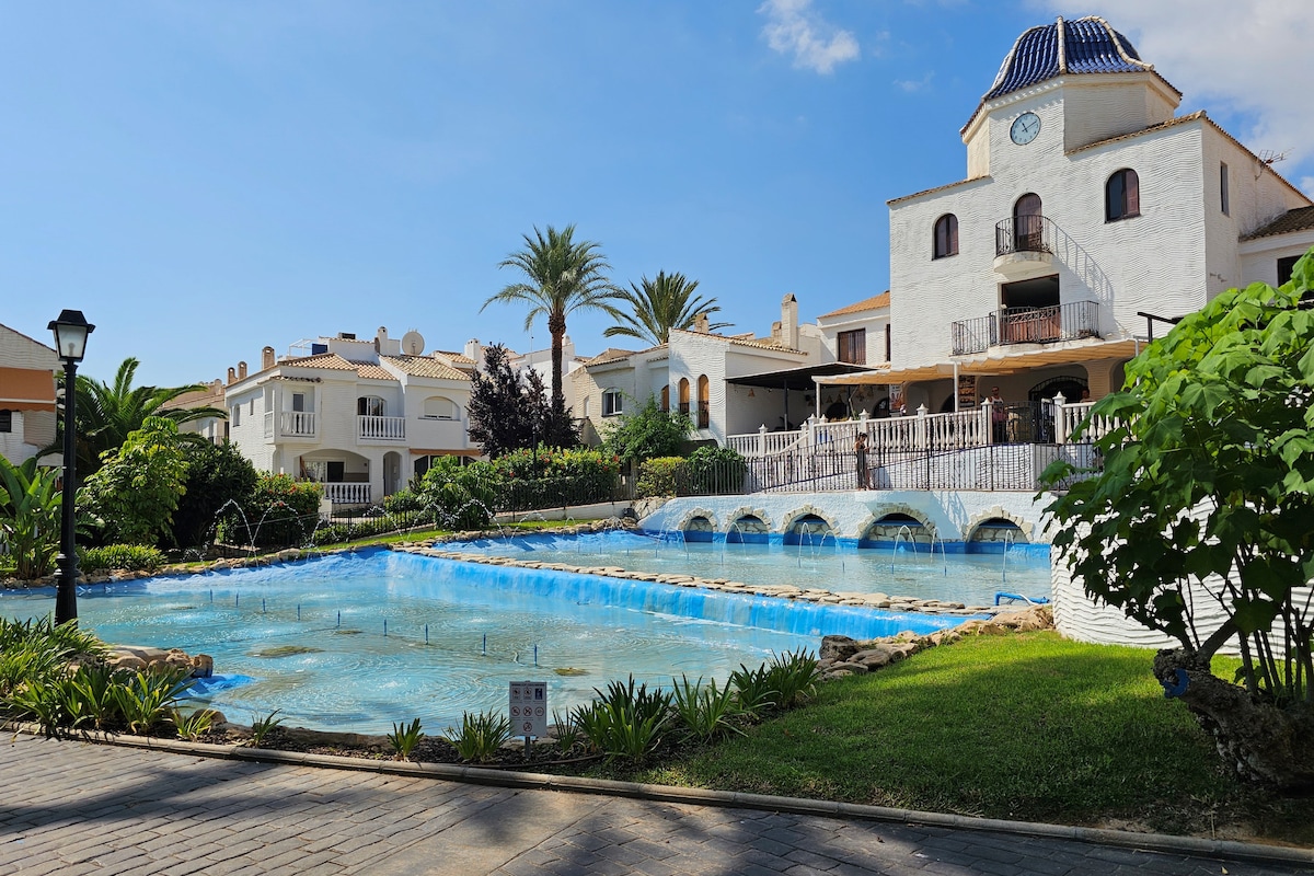 Відпочинок біля моря🌴в тропічному саду Двоповерховий будинок, повністю обладнана кухня, тераса для барбекю, кондиціонер холодний/гарячий у кожній кімнаті, пінопластові матраци, безкоштовна парковка 3 сезонні та 1 зовнішній басейн (БЕЗ підігріву), безкоштовні спортивні майданчики, ресторани та паби в 200 м. Через дорогу: природний заповідник на 360 га. 300 м пішки до 3-кілометрового пляжу з блакитним флагом. Автобуси до Аліканте, Санта-Пола, Ельче, ALC Airp. Можливість сніданку в сусідньому кафе за зниженою ціною. Походи, їзда на велосипеді та чарівні одноденні подорожі Wi-Fi: 5g-600 Мбіт/с