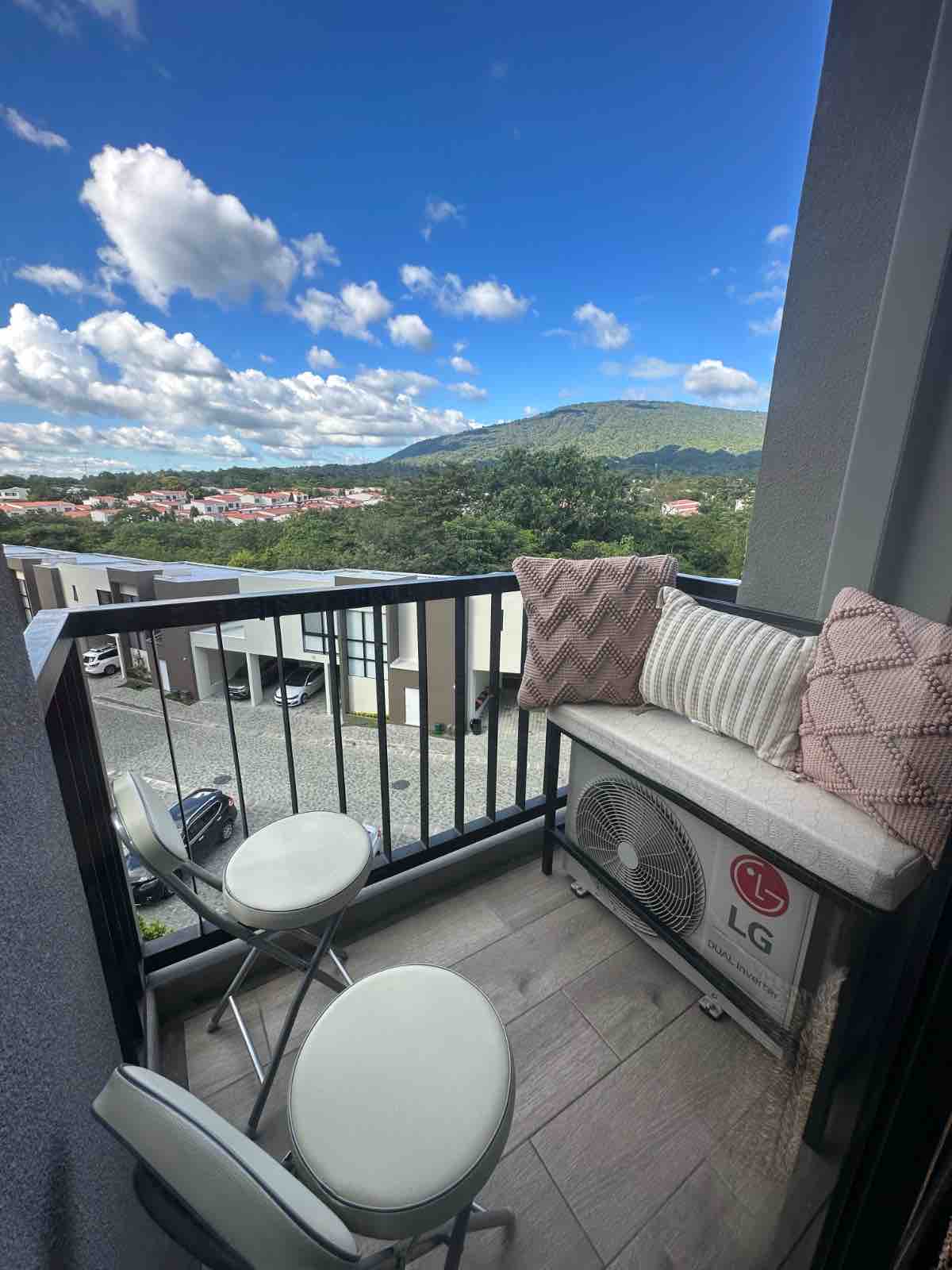 Нова квартира в сучасній вежі Санта-Текла. Повністю обладнаний, щоб забезпечити вам комфортний прийом із кондиціонером у всіх 3 кімнатах. У вежі ви матимете цілодобову охорону та помешкання, які ідеально підійдуть для коворкінгу та сімейного барбекю. Окрім тренажерного залу, даху з гарним видом на місто та доступом до двох приватних парків. Він розташований в 5-10 хвилинах від найкращих торгових центрів, в 10 хвилинах від американського посольства, в 30 хвилинах від міста серфінгу та в 20 хвилинах від вулкана Ель-Бокерон.