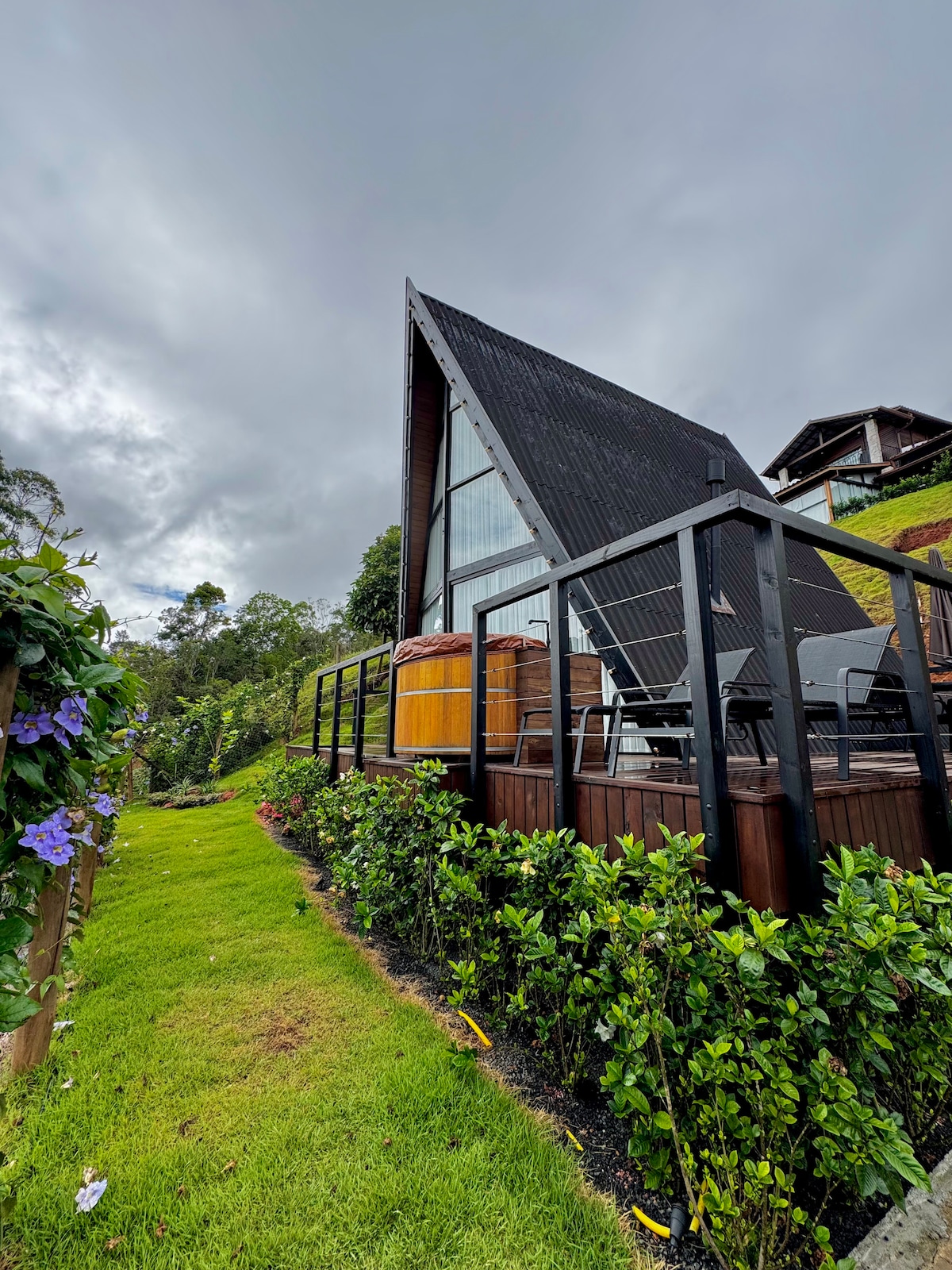 Ціле й ексклюзивне помешкання для 2 осіб, ідеальне для тих, хто шукає приватності, комфорту та спокою посеред природи. Шале розташоване в Табокасі, Санта-Тереза, штат Еспіріту-Санту, і пропонує чарівний балкон, терасу з приголомшливим видом, кухню для гурманів, гараж і повністю закриту територію. Затишний люкс із гідромасажною ванною, телевізором, Wi-Fi та Alexa. Обладнана кухня та торговий автомат на території. Ідеально підходить для особливих моментів відпочинку, спілкування та оздоровлення в зеленій та тихій обстановці.