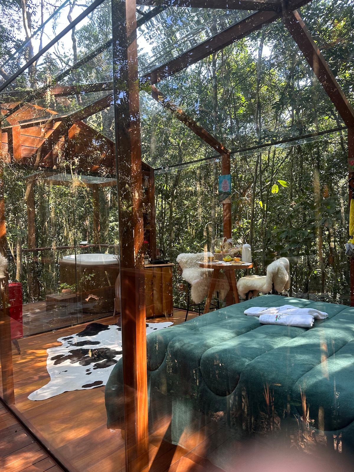 Venha conhecer a 1. Casa de vidro do ÉS, localizada na Villaggio Forestale, Santa Teresa/ES - no Circuito das Flores - Vale de Benção/ES. A cabana possui paredes e teto de vidro, e está localizada em meio a Mata Atlântica, rodeado pelas estrelas, fauna e flora local! Nela você poderá se desconectar e reconectar se a natureza, o que permite uma e experiência única para os amantes da natureza que se hospedam.
