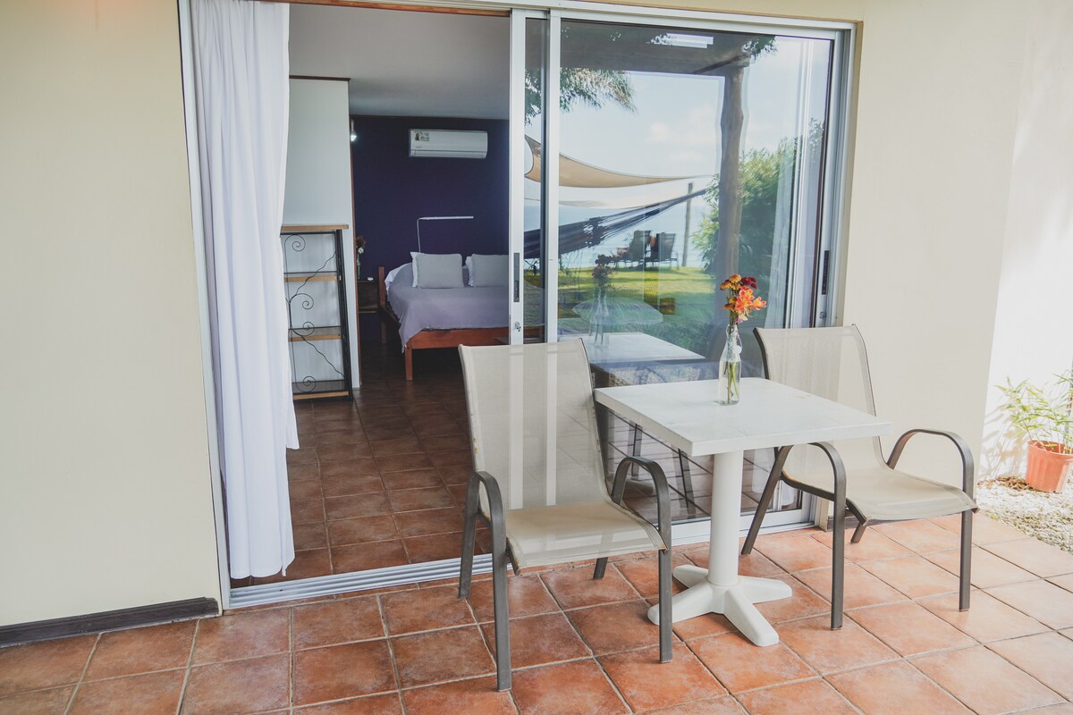 Ідеальне розташування в центрі Санта-Терези, за 5 хвилин ходьби/500 метрів від найкращого пляжу, магазинів, ресторанів і нічного життя, але далеко від пилу та шуму. Окремий, просторий, сучасний люкс має зручне ліжко розміру King size, якісну постільну білизну, затемнені штори, волоконно-оптичний Wi-Fi, робоче місце, смарт-телевізор, кондиціонер, стельовий вентилятор, сейф, міні-холодильник, величезну ванну кімнату з біде, подвійні раковини та душові кабіни, приватне патіо з видом на мирний сад з мавпами, приватну парковку та менеджери на місці.