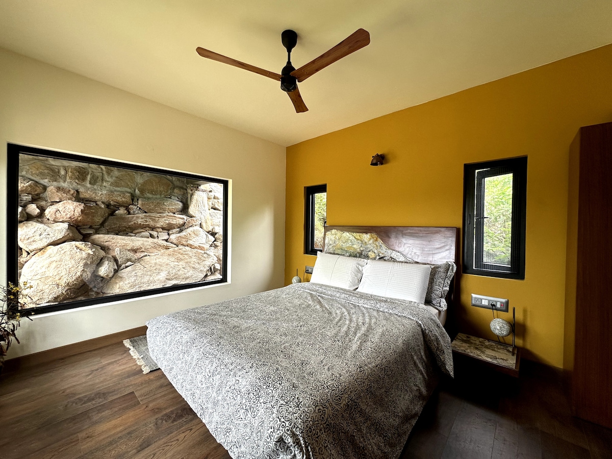 Ласкаво просимо до Amaidhi Stay – чарівного будиночка, розташованого в пишному манговому гаю! Створено для усвідомленого життя та спокійного відпочинку. Прокиньтеся під спів птахів і насолоджуйтеся видом на безкрайнький басейн прямо зі своєї кімнати. Цей затишний готель розташований усього за 60 хвилин від Бангалора. Він поєднує в собі комфорт, приватність і природу – ідеально підходить для пар, індивідуальних мандрівників і всіх, хто шукає спокою без тривалої поїздки. Оточене деревами, квітами й фруктами, це ідеальне місце для відпочинку, щоб сповільнити темп, розслабитися й відновити зв’язок із природою. І так, бери з собою домашніх улюбленців!