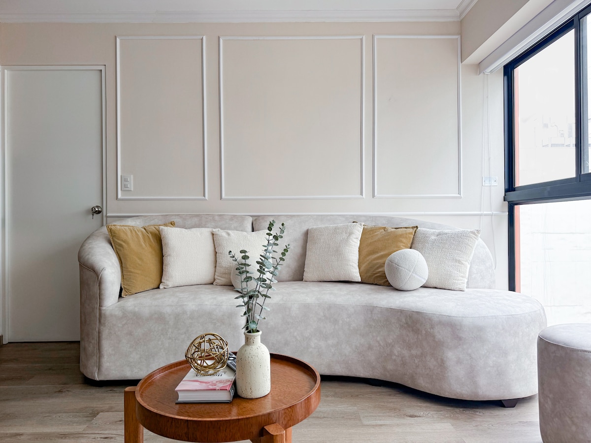 Ласкаво прошу в CasaSaya, ваш дім у Мірафлорес – елегантний, спокійний і розташований у ідеальному місці. Ця простора квартира площею 60 кв. м пропонує спокій і стиль, з надзвичайно зручним ліжком розміру «king size», кондиціонером/обігрівачем, власною терасою, пральною машиною та швидким Wi-Fi — ідеально підходить для бізнес-мандрівників, пар або тривалих перебувань. Розташоване на тихій вулиці всього за три квартали від набережної та п’ять від Ларкомара, ви будете оточені кафе, ресторанами та видом на океан — все в межах пішої доступності, але подалі від метушні.