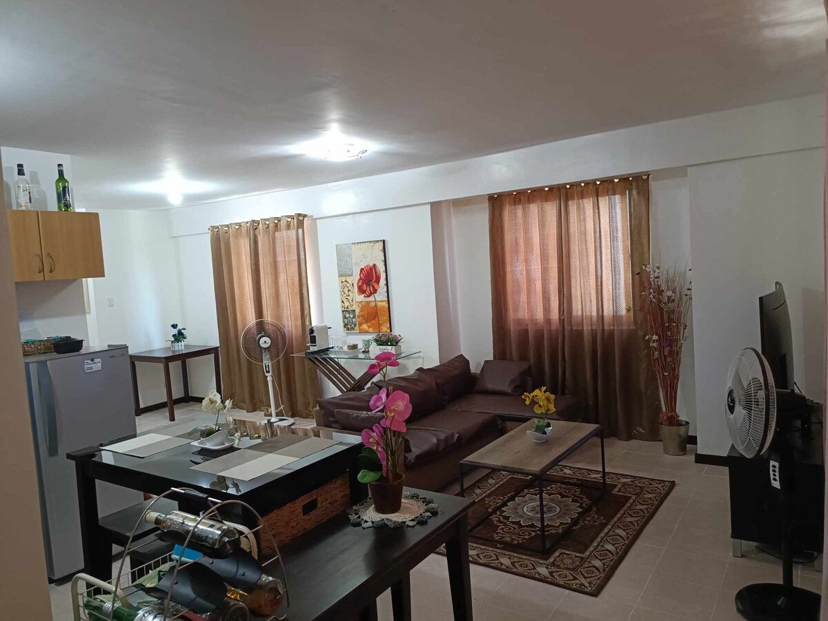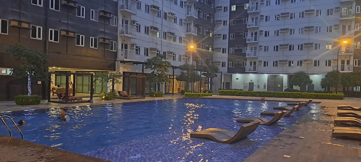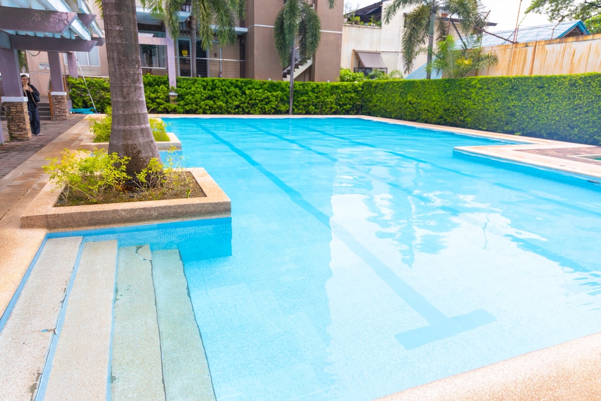 великий кутовий блок площею 62 кв. м з кондиціонером, стильно розташований на головній дорозі з балконом, що відкривається біля басейну. помешкання знаходиться в декількох кроках від гіпермаркету SM для всіх ваших потреб і продуктів, а також ви матимете Добре обладнана кухня, де ви можете паркуватися безпосередньо під своїм помешканням Безкоштовна парковка на підвалі Насолоджуйтеся доступом до басейну та тренажерного залу душ з гарячою водою, Інтернет - 200 Мбіт/с, ви можете всі свої шоу за номером 4K у великому смарт-телевізорі