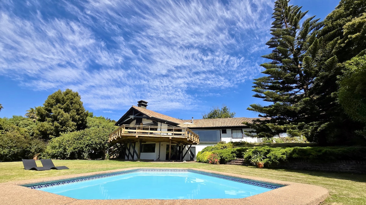 Захоплюючий будинок у Тункені, кондомініум Bosquemar на ділянці площею 5000 метрів, оточений вражаючим лісом, для 6 осіб, повністю обладнаний, дуже затишна сучасна архітектура, а також камуфльована навколишнім середовищем через приміщення, інтегровані з зовнішньою терасою, великою терасою з басейном і кінчо. Паркувальні місця всередині ділянки. Кондомініум дуже безпечний, з контрольованим доступом і охоронцями вдень і вночі, на ділянці є власний доглядальник.