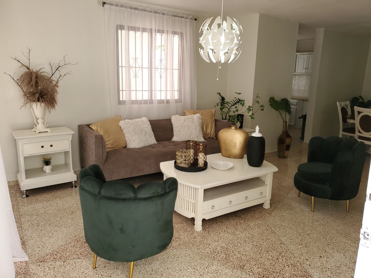 Відпочиньте всією сім 'єю в цьому спокійному місці для розміщення. У нас є мебльований будинок для дуже спокійного та тихого перебування в місті Санто-Домінго. З трьома першокласними кімнатами та зручними сучасними ліжками для гарного відпочинку під час вашого перебування. Добре обладнана кухня і вітальня для вашого комфорту та задоволення.