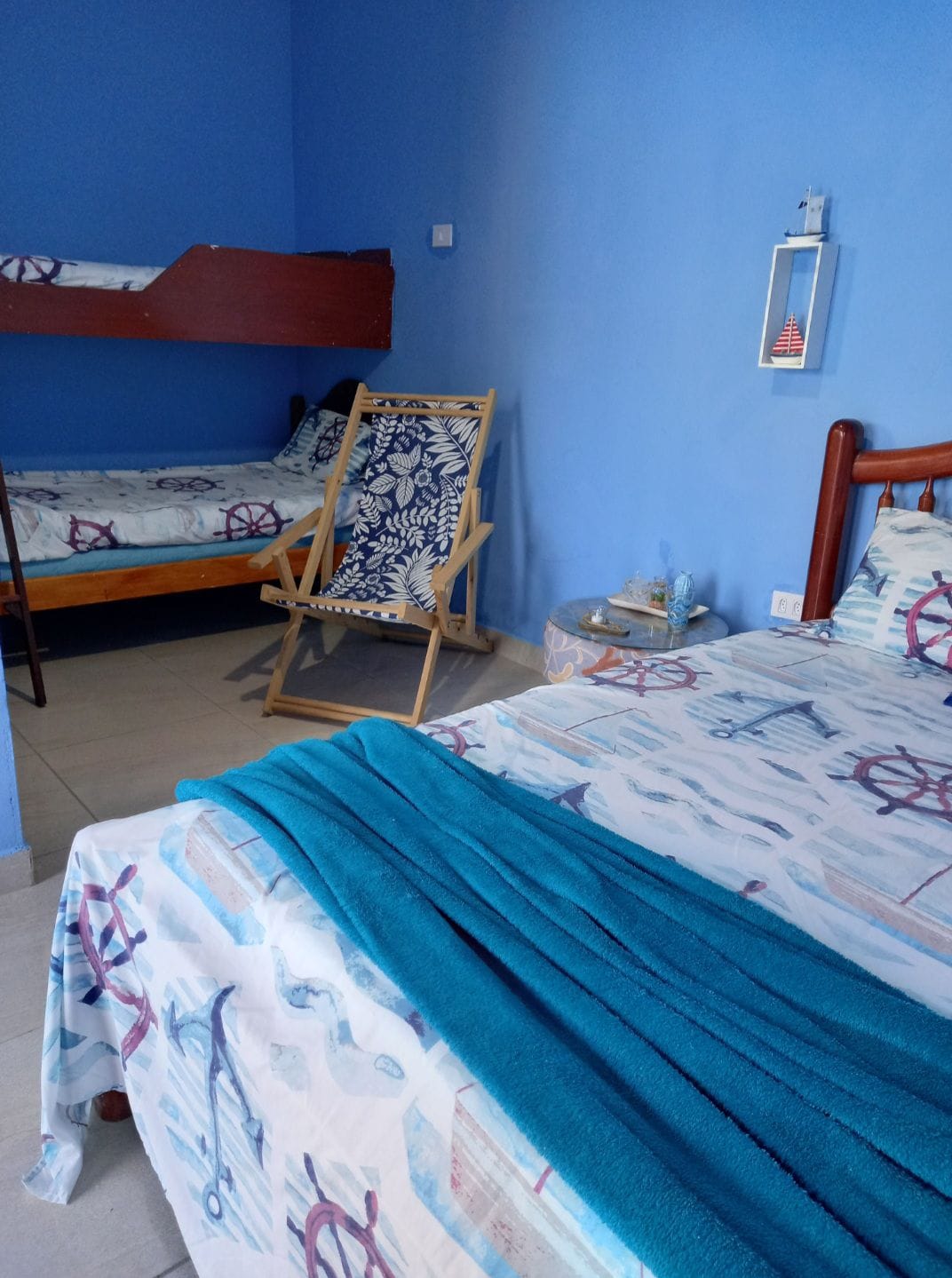 кімната нового готелю, яка вміщує до 4 осіб на двоспальному ліжку та допоміжному односпальному ліжку готель знаходиться в 200 метрах від прекрасного пляжу Гуаюба-ель-Гуаруджа o.quarto має окрему ванну кімнату, і ви можете користуватися кухнею спільної зони у нас є велике і розслаблююче патіо з сітками, оточене природою з пташиними мавпами, серед інших готель виходить на густий ліс дуже зелений і com.varios animas wild насолоджуйтеся витрачати кілька днів, щоб відпочити