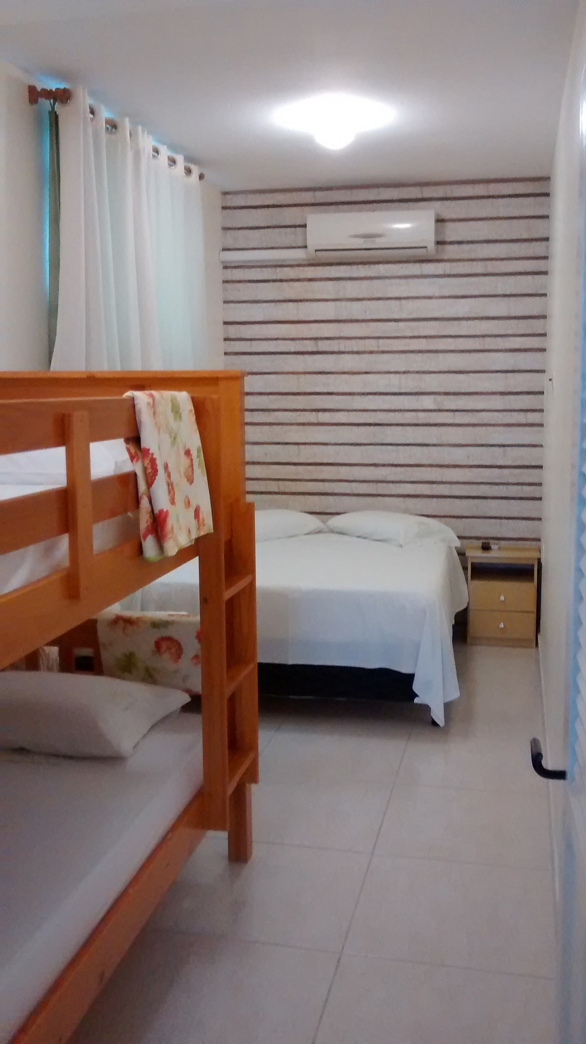 O quarto dispõe de 01 frigobar, 02 ar condicionado, 02 televisões, internet Wi-Fi, 01 cama matrimonial e 02 individuais num quarto e 01 cama matrimonial e 02 individuais (beliche) no outro quarto, tamanho: 39 m2.
