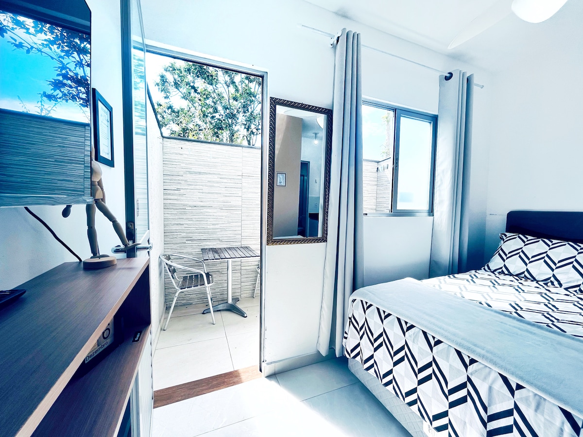 Квартира-студія в районі Жардім Атлантіко/Флоріанополіс, ідеально підходить для довгого або ділового перебування. У помешканні є кондиціонер, інтернет та паркування. У регіоні є ринки, ресторани, послуги та громадський транспорт. З помешкання можна легко дістатися до центру, BR та швидкісної автомагістралі, а також до Beira-Mar Continental та стадіону Орландо Скарпеллі. Це функціональний, безпечний і добре розташований варіант, особливо підходить для тих, хто шукає практичності та зручності в повсякденному житті.