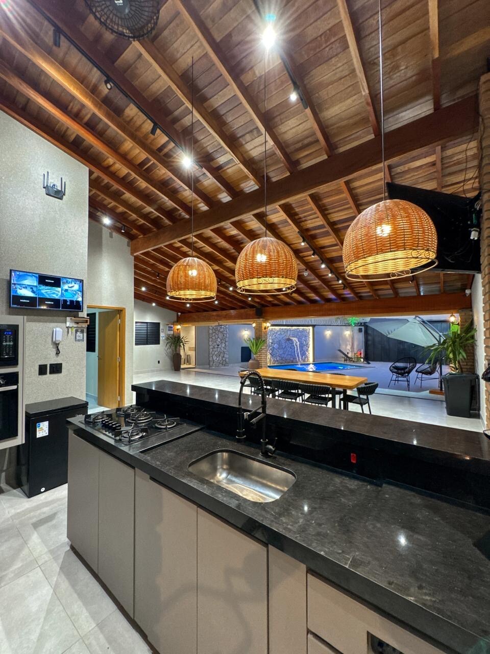 Чакара 🍀матиме:🍀 🏘️🛌 3 спальні, телевізори з кондиціонером і двоспальним ліжком у кожній кімнаті, вбудованими шафами. Повна 🍴🥄кухня, плита, холодильник, каструлі та сковорідки, столові прилади, склянки, напої. 🍻🍖Чудовий район для гурманів, з барбекю та стільницею. 🛏️Проживання на 10 осіб. 📺Їдальня та телевізор. 🏊🔥 Великий басейн з підігрівом. 🏖️Quadra de Areia для дітей Дитячий🏩 будинок. Просторий⚽ задній двір. 🧊Морозильна камера. 🥘 Податок. 🛁🚿 4 ванні кімнати (1 з гідро). 📱🎱 Wi-Fi