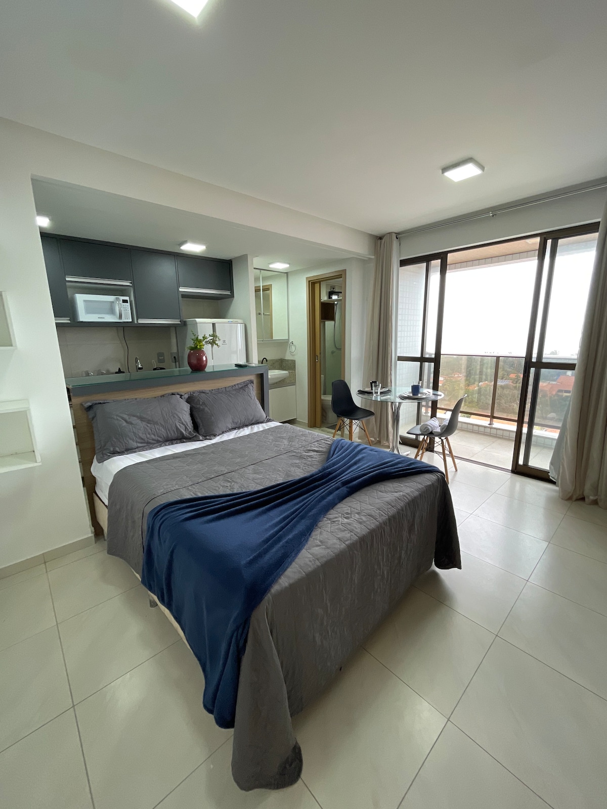 Studio moderno e aconchegante com vista para o mar, localizado na Av. dos Holandeses, no Calhau. O condomínio oferece área de lazer completa com piscina, academia, mercadinho e portaria 24h. O apê possui Wi-Fi, Smart TV, cozinha equipada e ambiente climatizado. Perto da praia, bares e restaurantes, é ideal para quem busca conforto e praticidade em São Luís