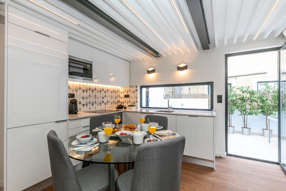 Welcome to our beautiful prestige flat, perfectly located in the heart of Lisbon city center! In a quiet oasis in one of the city's most famous historical neighbourhoods – Bairro Alto – close to Príncipe Real, Cais do Sodré and Santa Catarina - you'll feel at home in this spacious and bright studio with modern design and an exclusive garden/terrace for relaxing, eating out and enjoying the sun. Perfect for business travellers, couples & families. Fast Wifi + Workspace. Ideal for remote work.