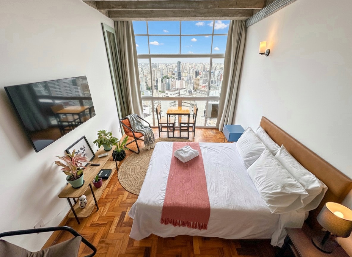 Studio com Ofurô e uma Vista Incrível para Cidade.