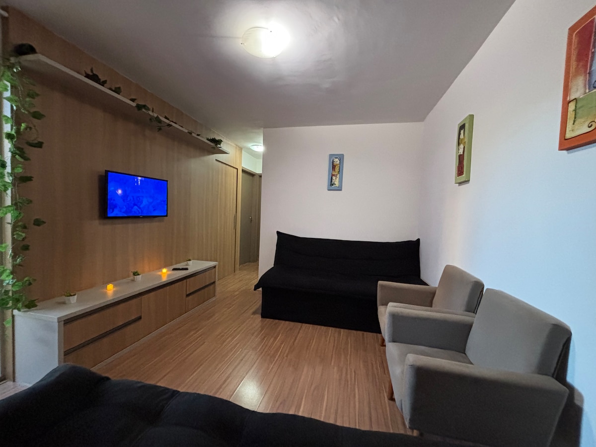 Ваша сім 'я буде ближче до всього, зупинившись у цьому добре розташованому помешканні. Apê в найкращому місці, в 1 хвилині ходьби є ринок, пекарня, тренажерний зал, салон краси тощо... Кондиціонер у всіх кімнатах, пральна/сушильна машина, посудомийна машина, вся побутова техніка, необхідна для вашого перебування. У мене є 3 квартири в одному кондомініумі, і я можу приймати великі групи. Модульні ліжка, вибирайте між ліжками queen-size або односпальними ліжками в кожній кімнаті, я пропоную дитяче ліжечко безкоштовно.