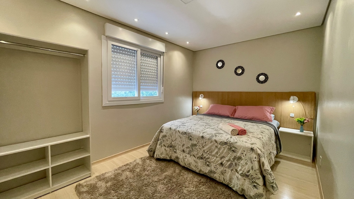 Красива та затишна квартира в Грамадо. Дуже добре розташоване, воно знаходиться в 350 м від озера Хоакіна Ріта Бір, однієї з головних точок різдвяного світла. Чорне озеро знаходиться за 950 м, а крита вулиця за 1,5 км - в 15 хвилинах ходьби. У квартирі є опалення у всіх кімнатах, камін, барбекю та Wi-Fi. Крите місце в гаражі. У спальні є двоспальне ліжко, а у вітальні - односпальне ліжко, на якому може розміститися інша пара.
