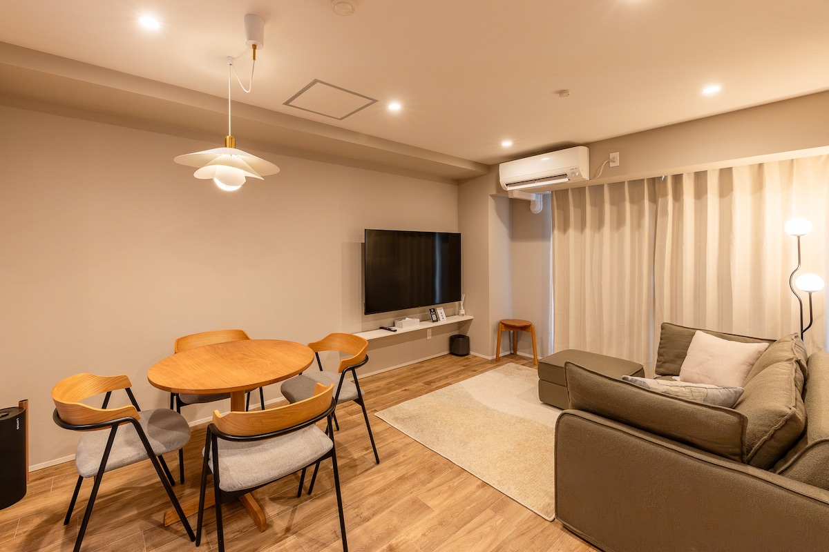 Ця кімната знаходиться в 6 хвилинах ходьби від Сусукіно, і ви можете спокійно провести час на річці далеко від метушні центру міста. Просторий номер ідеально підходить для сімей та друзів! Вона обладнана проєктором, тому ви можете насолоджуватися фільмами та улюбленими відео в кімнаті на великому екрані. Крім того, неподалік від Саппоро є чудові ресторани, де ви можете повністю насолодитися кухнею Хоккайдо. ~ Особливості кімнати Добре освітлена сонцем кімната, що виходить на південь, з панорамним краєвидом на річку Тойохіра Повністю обладнаний столом і стільцями для дистанційної роботи У хвилині ходьби є пральня, що робить помешкання зручним для довгострокового перебування Розташоване вздовж річки Тоойогіра, чудово підходить для прогулянок і пробіжок ~ Зручне розташування ~ 6 хвилин пішки від станції 📍 Хосуі-Сусукіно Ринок 📍 Нідзьо в 7 хвилинах ходьби 📍 Танукікодзі – 8 хвилин пішки Зручно для огляду визначних місць у пішій доступності від 📍 телевежі Автобусна зупинка📍 аеропорту в 10 хвилинах пішки Він розташований з відмінним доступом до основних туристичних напрямків Саппоро!