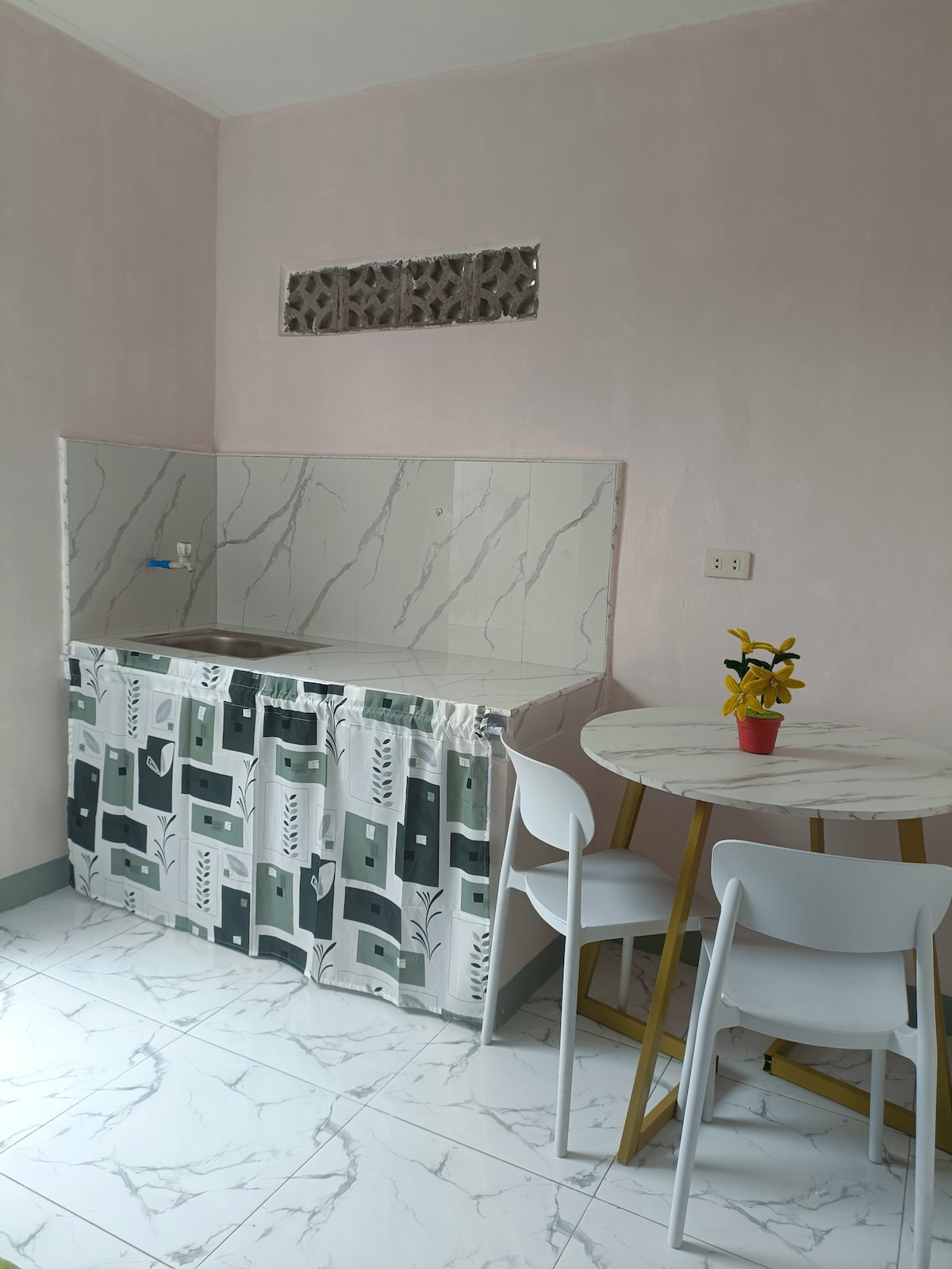 Затишна студія навпроти площі з дверима та вікнами в стилі амбару. Включає двоспальне ліжко, шафу, полицю та вішалку для одягу. Залишайтеся в прохолоді завдяки кондиціонеру або вентилятору, якщо ви хочете впустити свіже повітря. На міні-кухні є холодильник, плита, чайник, рисоварка, каструля, сковорода та предмети першої необхідності для їжі. Безкоштовна мінеральна питна вода під час вашого перебування. Власна ванна кімната з нішами. Надаються шампунь і гель для душу. Насолоджуйтеся приватною їдальнею на відкритому повітрі, пральнею та паркуванням збоку. Магазини сарі-сарі неподалік для покупки предметів першої необхідності.