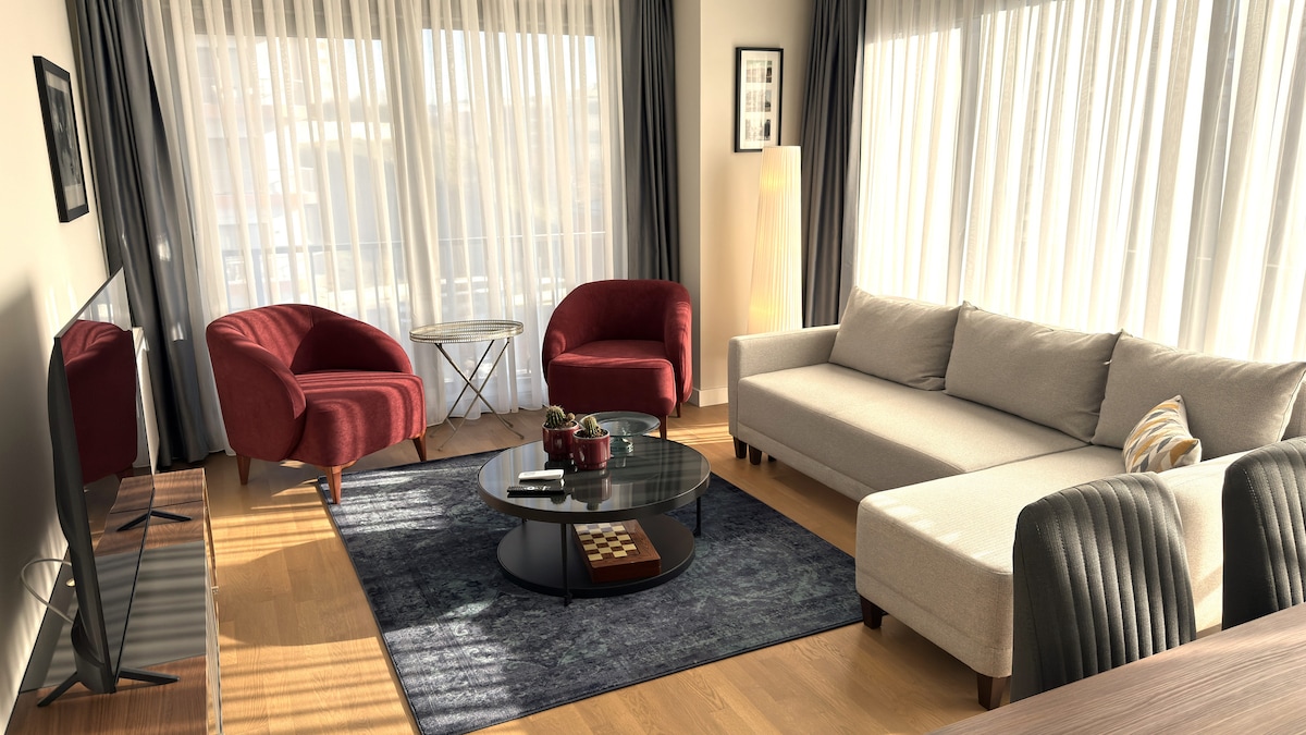 Ласкаво просимо до наших чудових апартаментів з 1 спальнею, які пропонують тепле та комфортне проживання в просторих помешканнях з видом на ліс, прямо в центрі фінансового та комерційного центру Стамбула. Ця квартира мебльована та обладнана найсучаснішими технологіями та сучасним дизайном, і знаходиться всього за декілька хвилин від Вадистанбула та торгового центру Вадистанбул, найпрестижнішого району міста.