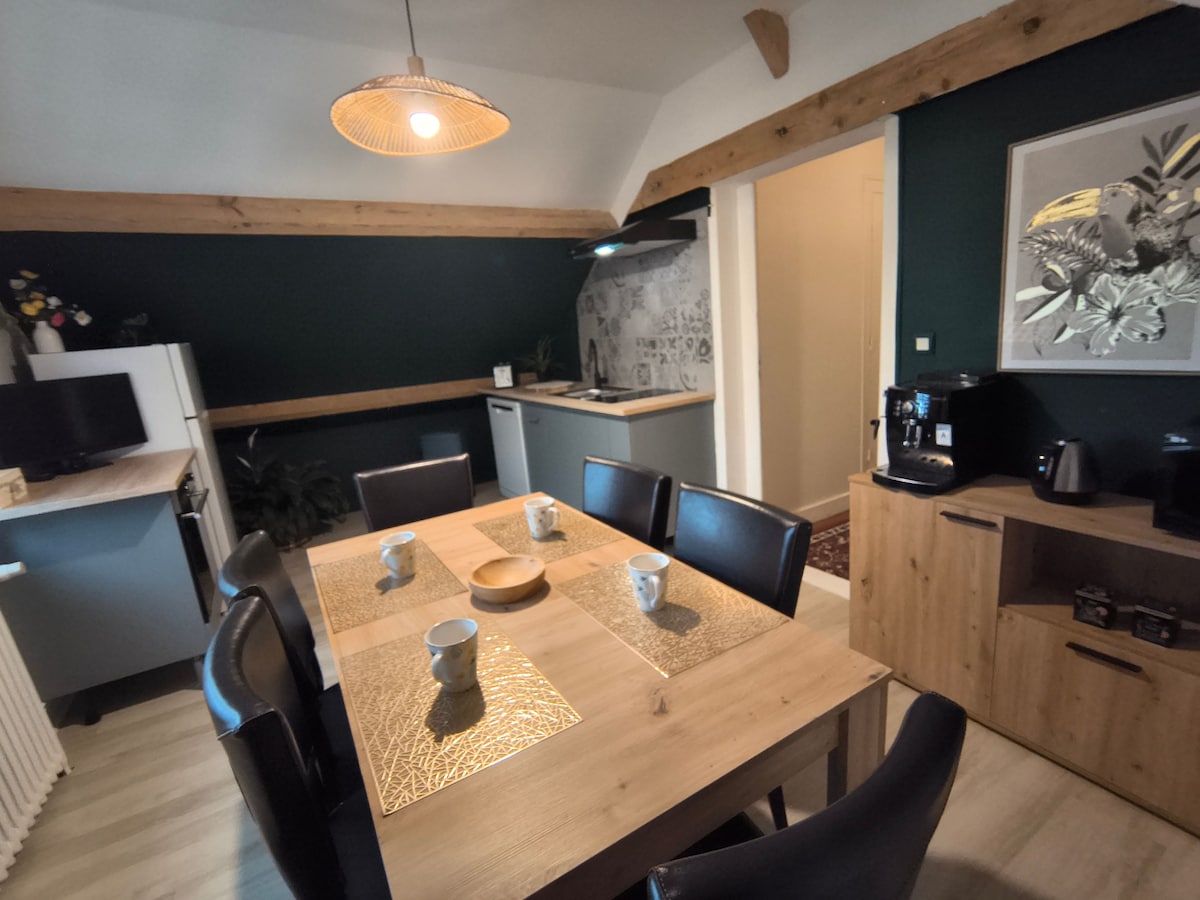 Подаруйте собі незабутній відпочинок у цьому комфортному заміському будинку. 2 двоспальні спальні + диван-ліжко, що дозволяє вмістити до 6 осіб. Окремий доступ до зони відпочинку із сауною та джакузі. До ваших послуг закритий сад, барбекю, безкоштовна парковка та високошвидкісний оптоволоконний інтернет. Ла-Ферте-Бернар – 15 км, 30 км від Ле-Мана, біля воріт Перша: походи, культурна спадщина, яку варто дослідити. Смарт-телевізор, настільний футбол і настільні ігри для веселих моментів. Бронюйте швидше! Цей шикарний і теплий котедж чекає саме на вас!