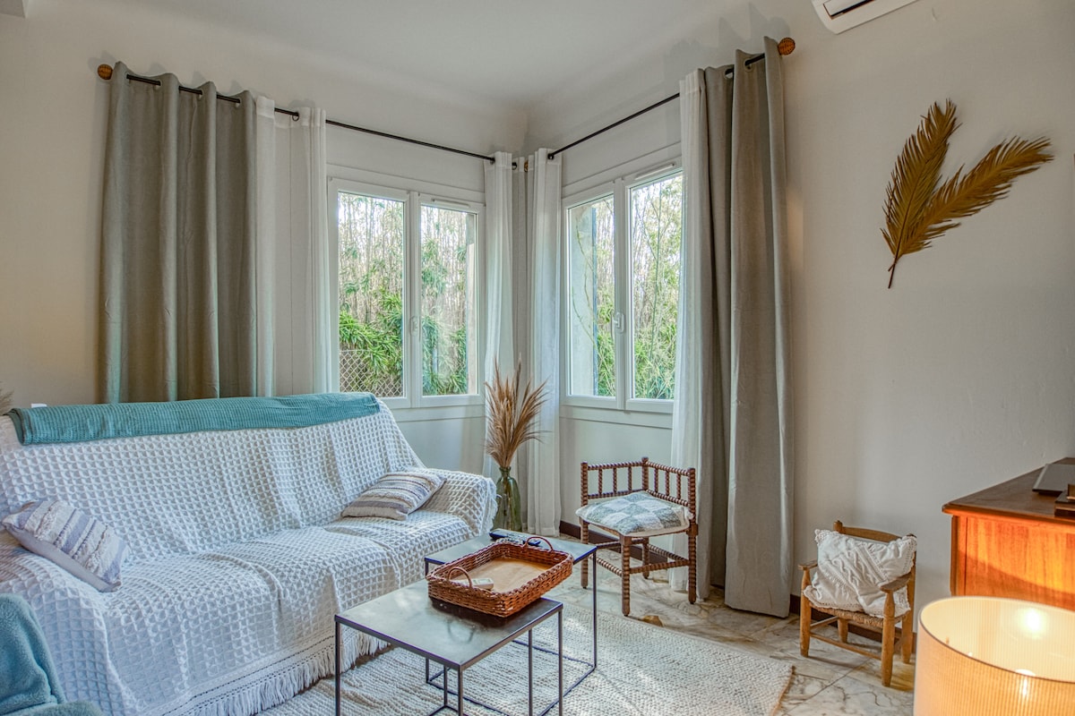 Двокімнатна квартира, 45 кв. м, простора. Повністю відремонтований і зручний. Патіо, балкон, вид на море. Набережна: прямий доступ до пляжу. Безкоштовна громадська парковка на вулиці. Ідеально підходить для відпочинку наодинці, пари, сім 'ї або дистанційної роботи перед морем. Окрім обладнання: чайник, тостер, кафе NESPRESSO. Постільна білизна EPEDA. Вішалка для рушників з підігрівом. Сонячне світло. Оренда рушників на вимогу: пакет 20 € за ліжко Банні простирадла 5 € на особу.