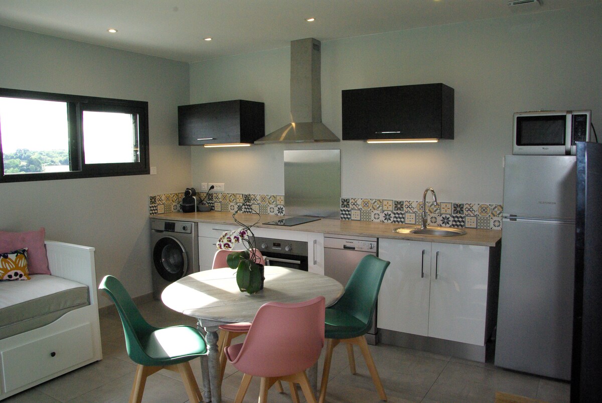 У верхній частині мармурових сходів відкрийте для себе цей просторий 91 кв. м. Т3. У центрі міста і навіть на ринковій площі насолоджуйтеся всіма зручностями поблизу. У спокійній обстановці ви матимете доступ до багатьох зручностей у цій квартирі (гігантський екран, італійський душ, американський холодильник, кавоварка, спальня площею 15 м2 з шафами, ванна кімната та окремий туалет...) 6-місне помешкання для простих паломників, працівників, сімей або груп друзів. Самостійне прибуття за допомогою сейфа