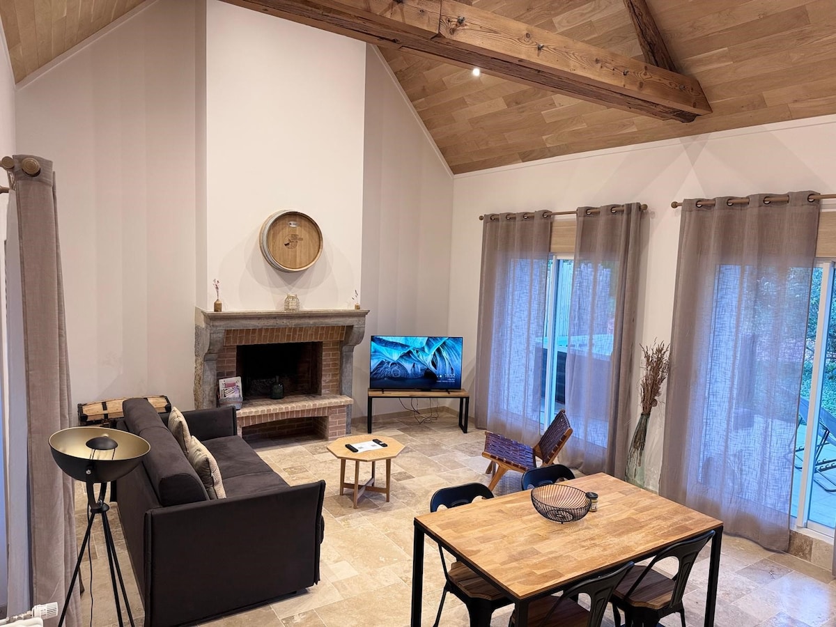 Студія площею 13 м2 повністю відремонтована та незалежна від нашого сімейного будинку. Розташований в центрі Лабережногоберега та в двох кроках від міфічного Château du Clos-Vougeot. Вітальня: двоспальне ліжко 140*200 Міні-кухня: 2 електричні тарілки, кавоварка Nespresso, мікрохвильова піч, холодильник, стільці та знімний стіл Телевізор/Wi-Fi/динамік Bluetooth Тераса для ванної кімнати: фен для душу унітаза Постільна білизна, рушники, рушники надаються 7 хвилин від автомагістралі / 15 хвилин від Бона та Діжона
