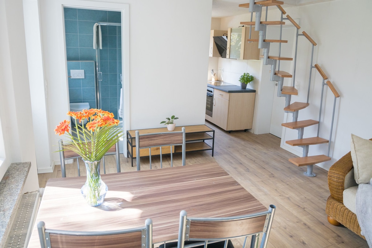 Ласкаво просимо до чарівної квартири площею 21 кв. м у окремому гостьовому будинку – ідеально підходить для індивідуальних мандрівників або пар, які цінують спокій і природу, але не хочуть відмовлятися від хорошого сполучення з містом. Невелика, добре обладнана кухня, власна ванна кімната та балкон з видом на сільську місцевість забезпечують комфорт і відпочинок. - 2 хвилини до автобусної зупинки. - 20 хвилин пішки до станції S-Bahn - 25 хвилин на автомобілі до центру міста Дрезден або до Мейсена