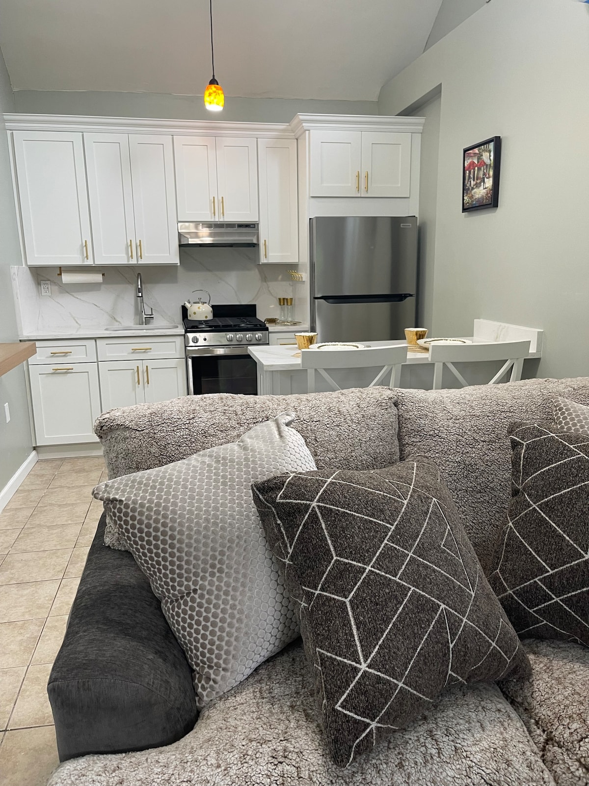 Насолоджуйтеся нашою чарівною квартирою з 2 спальнями, яка знаходиться в тихому та дружньому районі в тупику. Окремий вхід на першому поверсі нашого будинку з 2 спальнями, 1 ванною кімнатою, вітальнею, їдальнею та кухнею. Поруч: головні автомагістралі (Sunrise HWY/Long Island Expressway), продуктовими магазинами, виноробнею та виноградниками, парком Девіса, селищем Downtown Patchogue (ресторани, бари, пивоварні, магазини), пляжами, гольфом, аеропортом Мак-Артура, громадською лікарнею Лонг-Айленда, коледж Сент-Джозефом.