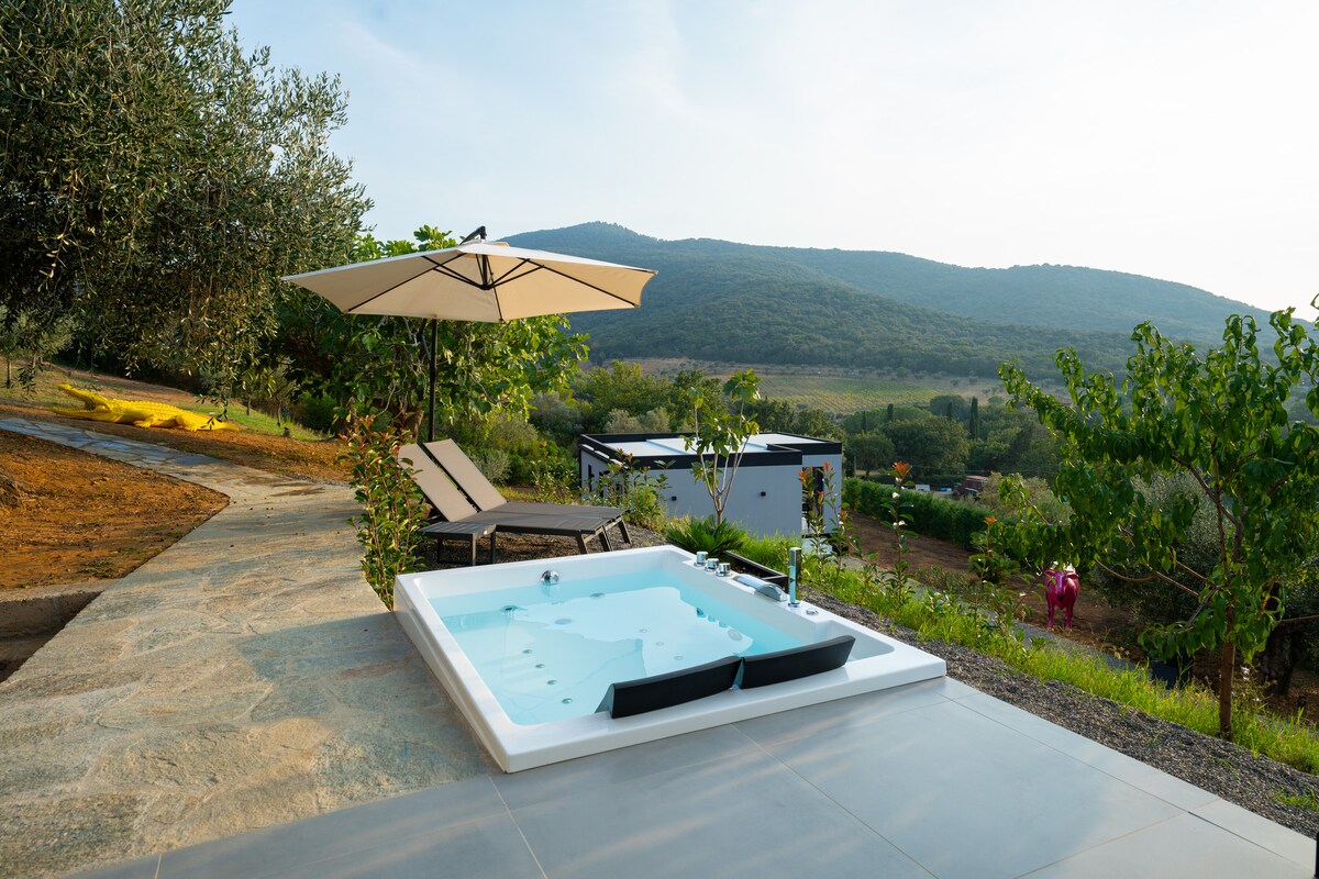 Ласкаво просимо до «Люкс мрії» нашого Glamping «Green Sensations» у Скарліно, Фоллоніка (GR). Ця студія площею 40 квадратних метрів пропонує розкішні зручності, окрему ванну кімнату та затишне двоспальне ліжко, з диваном-ліжком, до якого зручно доступна третя особа. Ви можете відпочити в гідромасажній ванні на відкритому повітрі і насолодитися природною красою, яка нас оточує, з захоплюючими видами на тосканську природу. У цьому люксі є садовий стіл із шезлонгами та парасольками.
