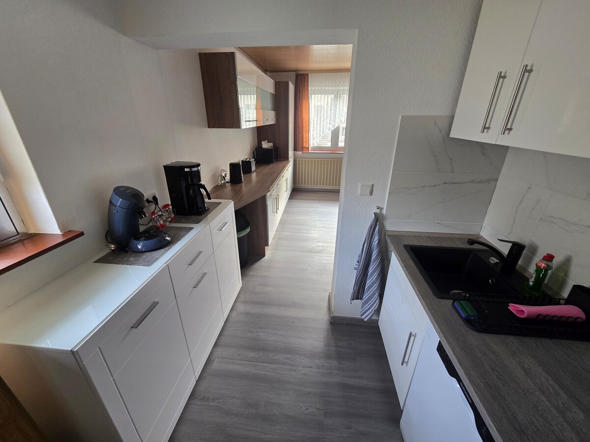 Візьміть із собою відпустку! Ми пропонуємо вам простору квартиру з оранжереєю, посеред північних гір Палатината/ Kusler Musikantenland. Квартира складається з двох спалень з трьома ліжками на 4 людини,великої вітальні-обідньої зони з відкритою кухнею та дуже гарною, просторою консерваторією. Постільна білизна та рушники входять до вартості оренди. Також є невелика кімната з пральною машиною та пральною дошкою, якою можна користуватися безкоштовно.