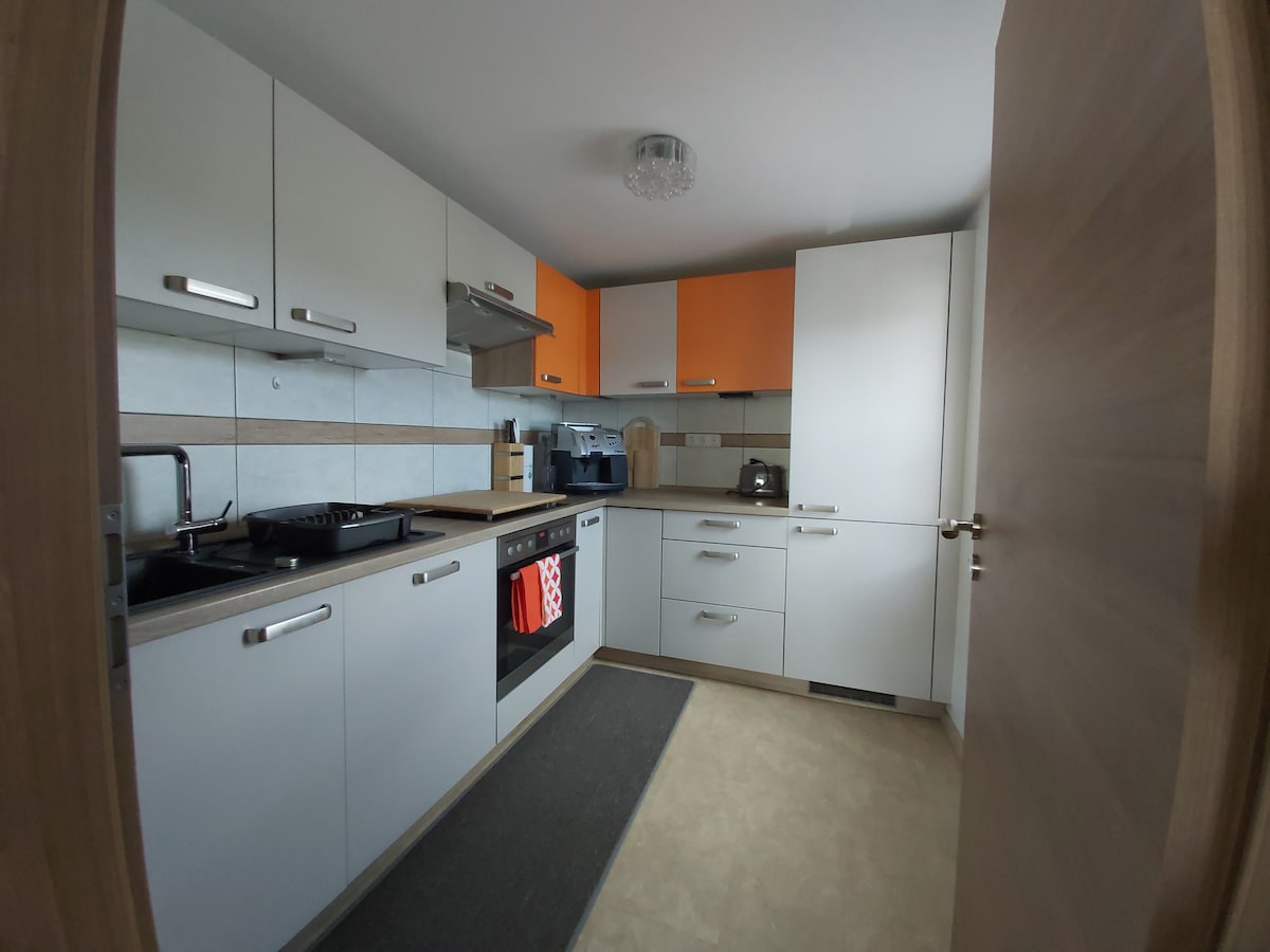 Тут ви та вся ваша сім 'я можете очікувати перебування, повного відпочинку в центрі Баварського лісу. Квартира розташована в невеликому селі на висоті 800 м, посеред лижної, пішохідної та зони відпочинку Sonnenwald, в оточенні численних пішохідних стежок, гірськолижних та бігових гірськолижних схилів. У великій квартирі вас чекає дров 'яна духовка, кавоварка, пральна машина, Netlix, 1 двоспальне ліжко + великий диван-ліжко, Wi-Fi, духовка та смачна пекарня прямо в будинку!